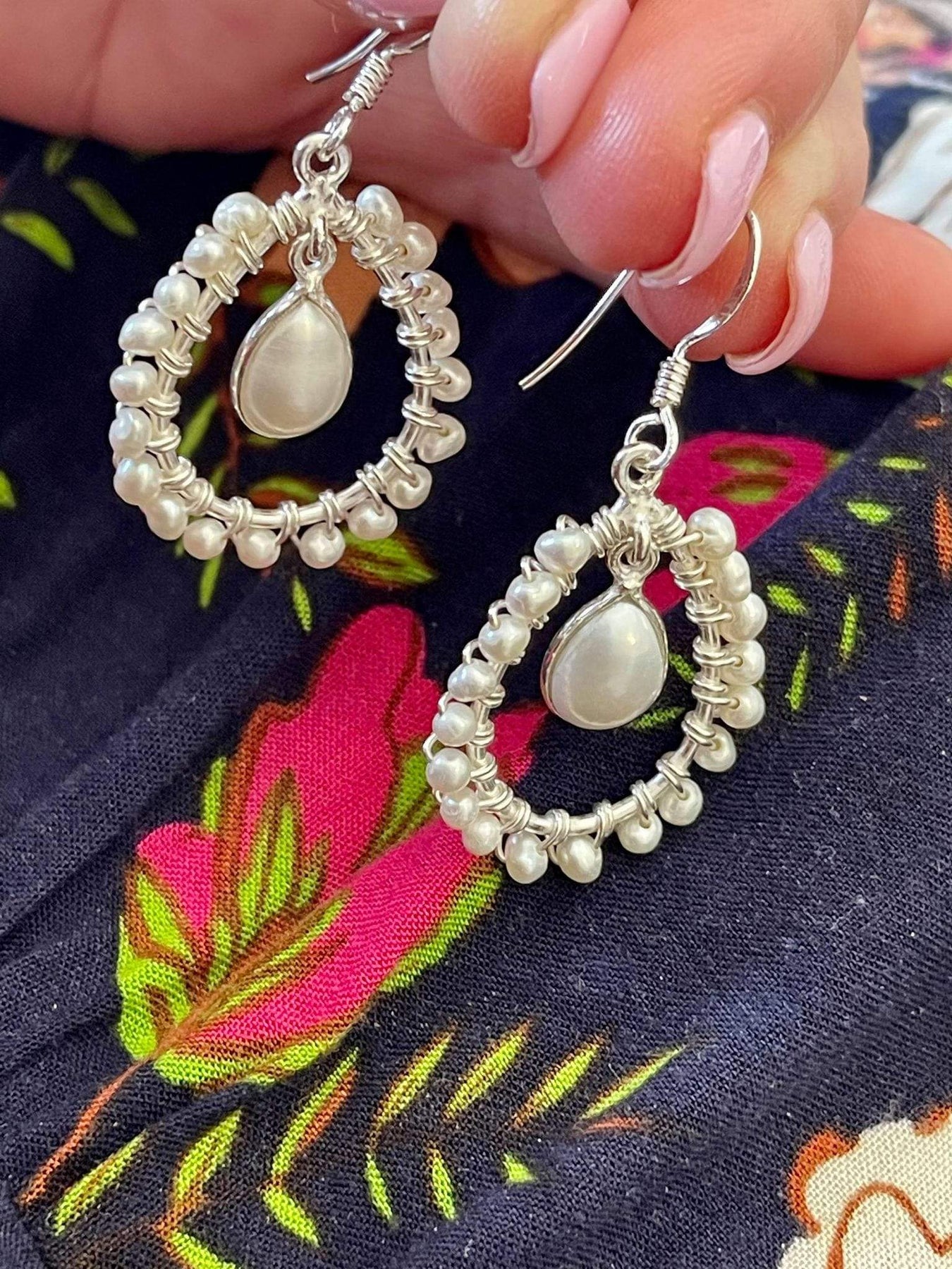 These versatile earrings are perfect for both glamorous occasions and casual everyday wear. Style them up to add a touch of elegance or style them down for a more relaxed and effortless look. Embrace the timeless beauty of silver and pearls with our Teardrop Pearl Hoop Earrings and let your style shine with every step.