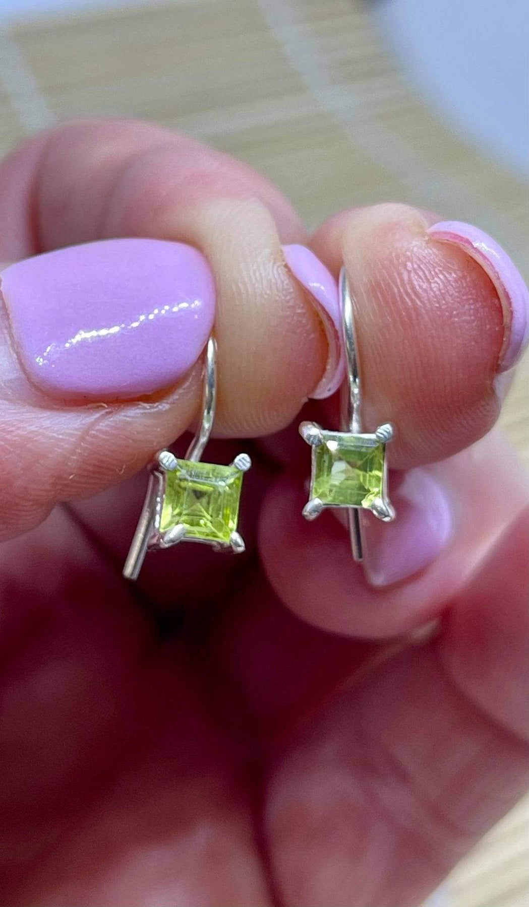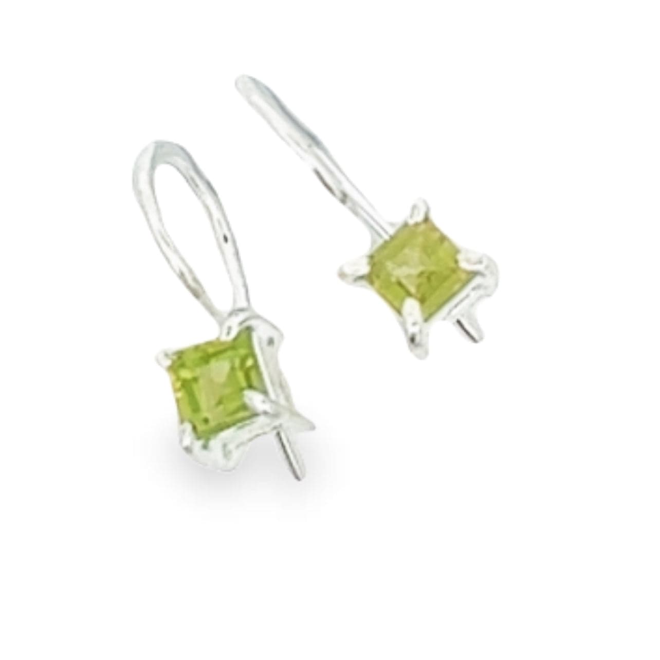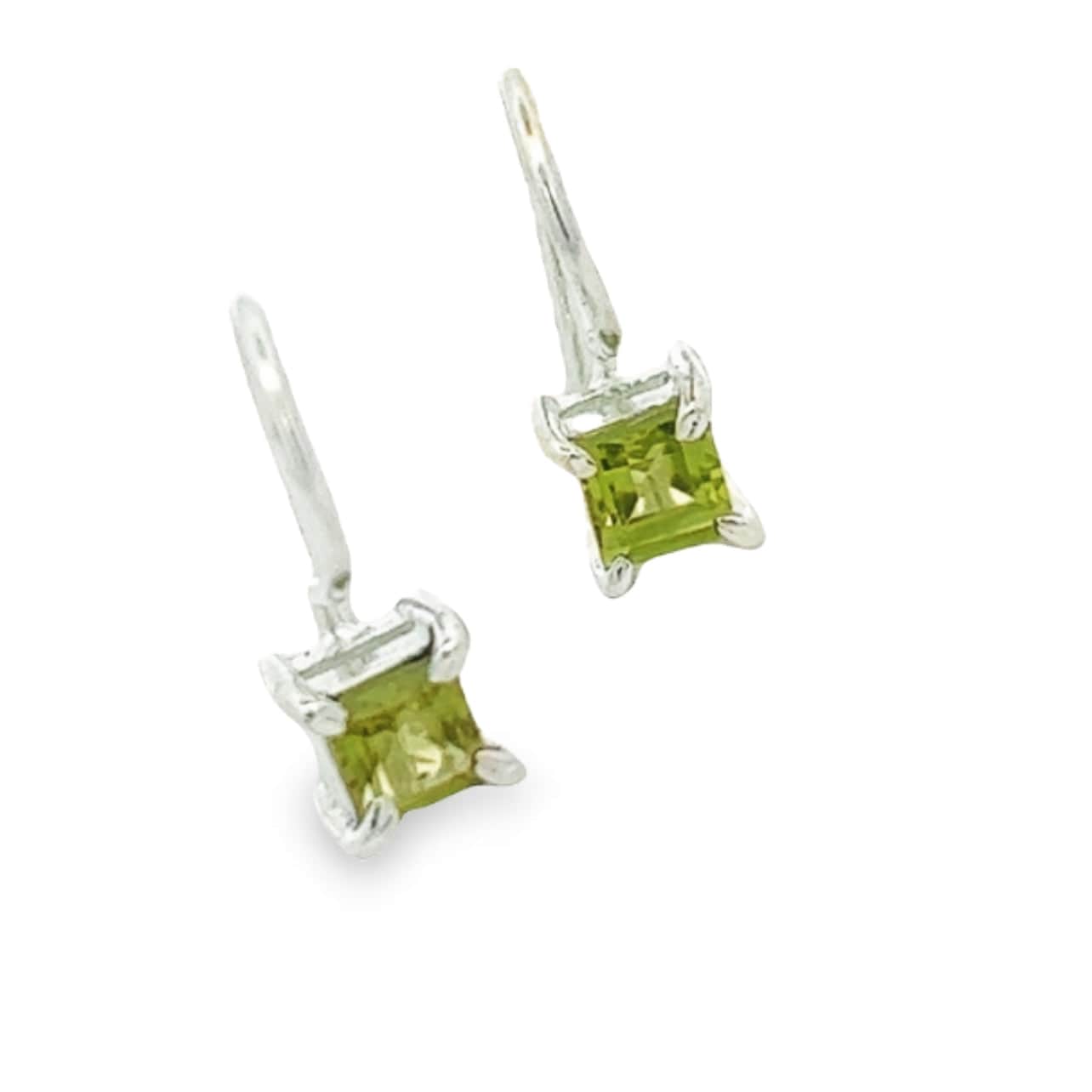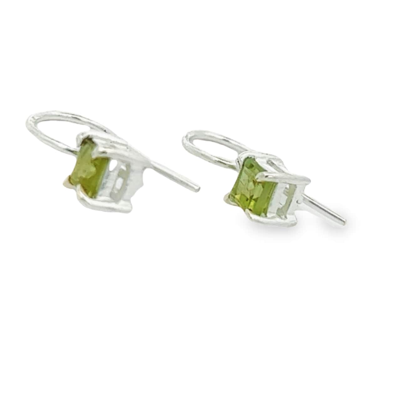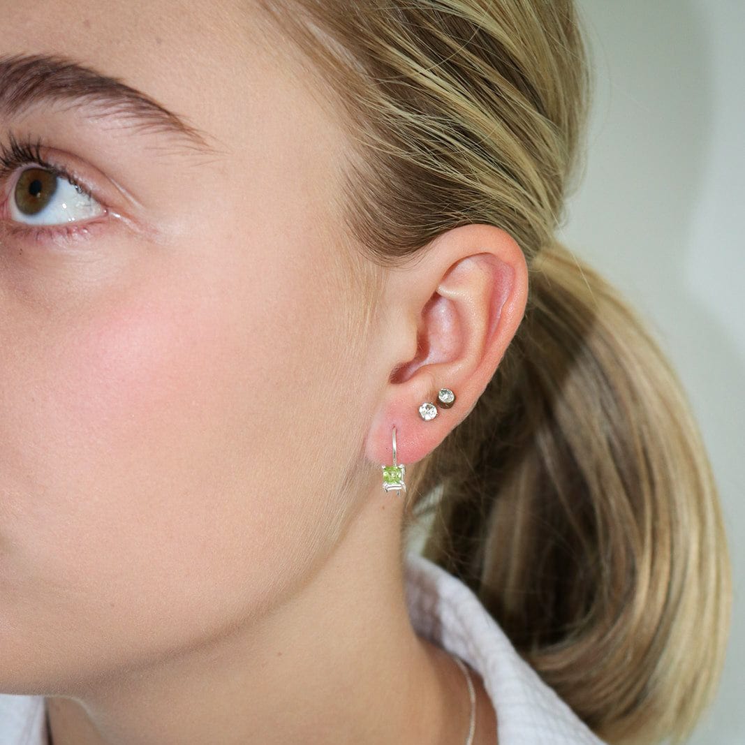 With their 4 MM square-cut peridot gemstone, they sit comfortably under your lobe but are designed to sparkle and beguile.  The colour alone is divine but paired with the sterling silver hook these earrings will definitely make your outfit pop whether it's day or night.