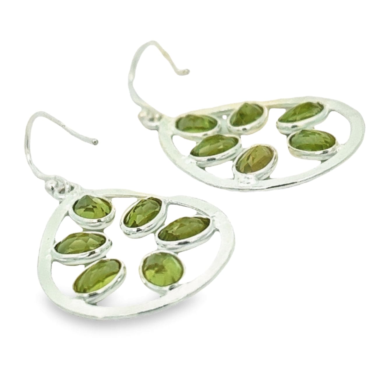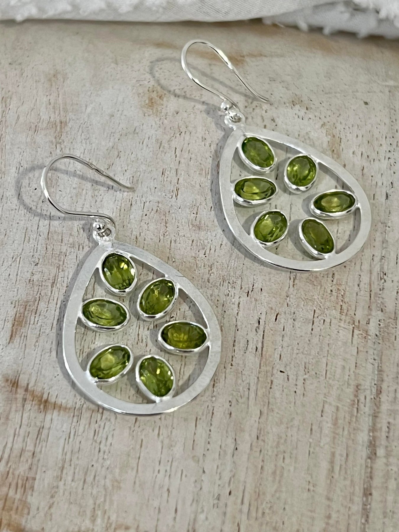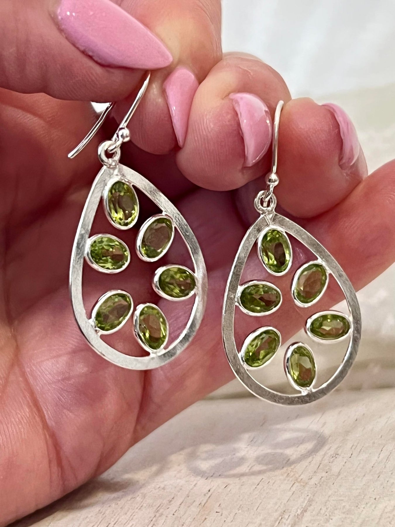 Six facet cut peridot gems in sterling silver teardrop hoops are guaranteed to make you smile and maybe feel like singing a little.