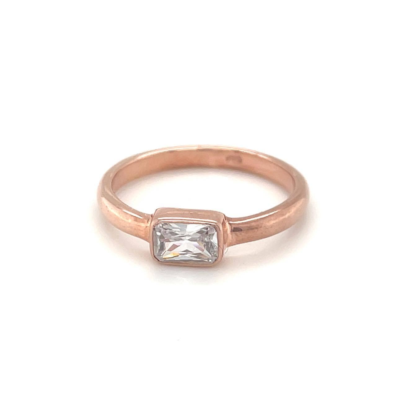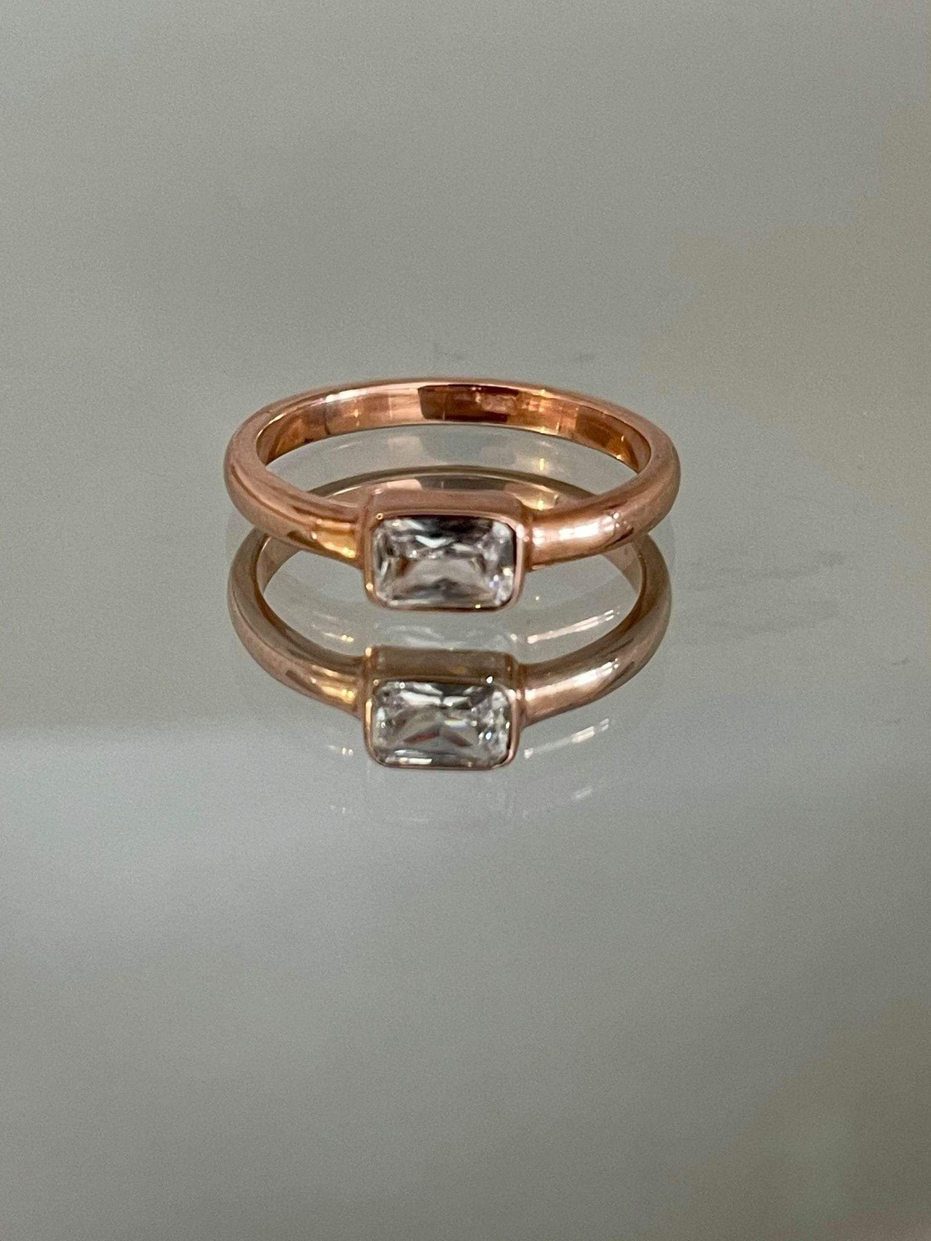 A beautifully simple piece, this dainty emerald cut ring with 18 carat rose gold vermeil will be sure to be your next favourite.