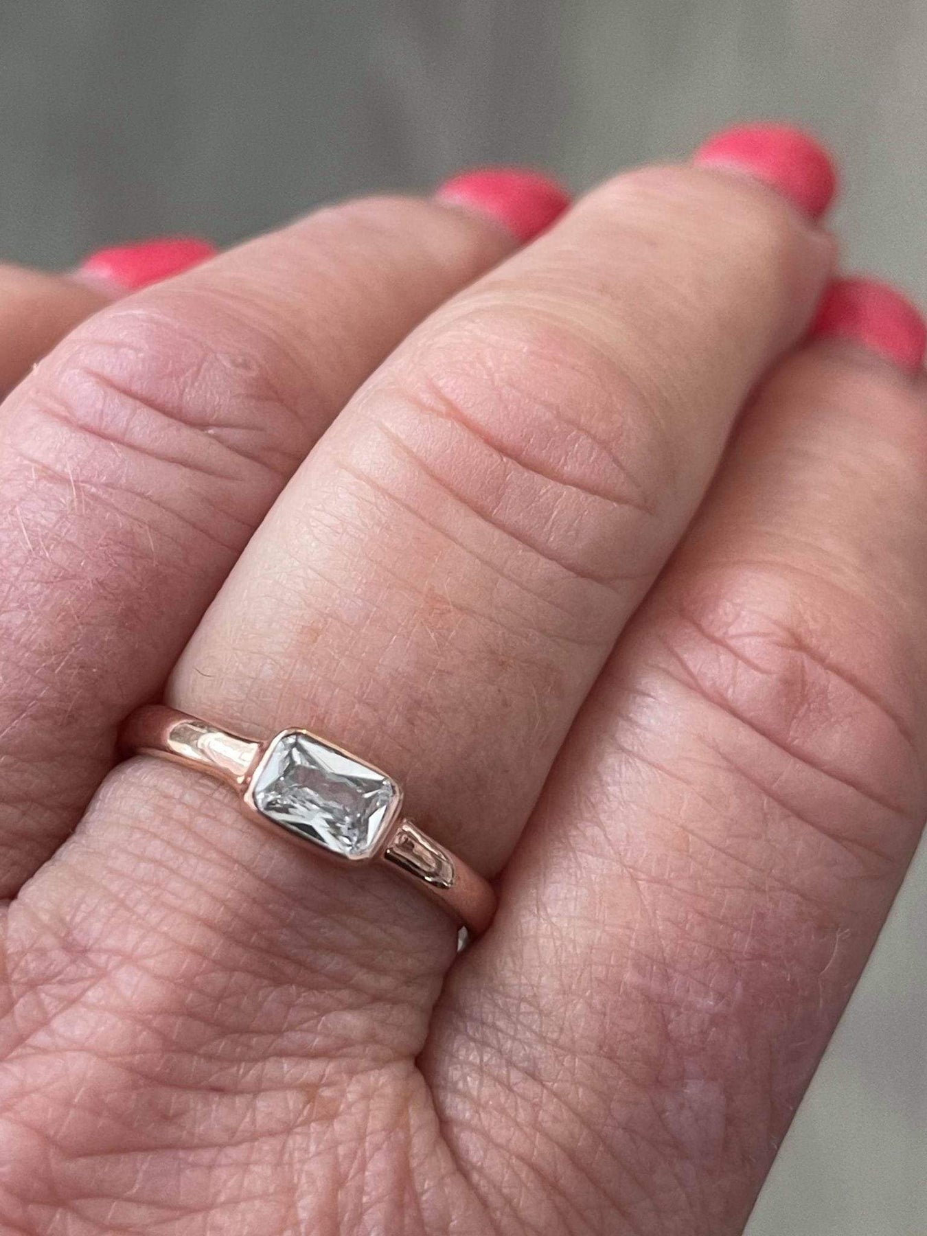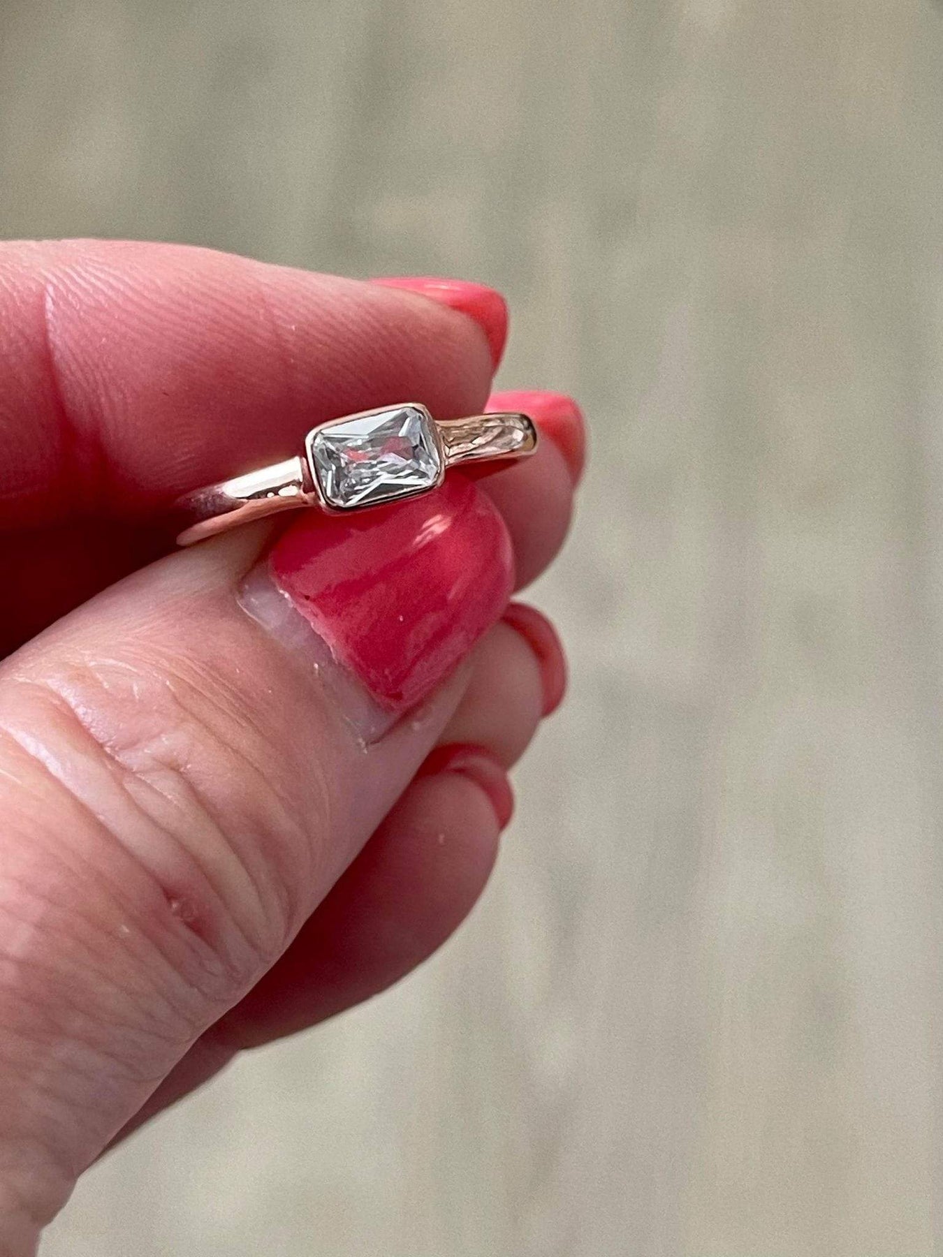 CLICK HERE TO SEND SOMEONE A HINT YOU'D LOVE THEM TO PURCHASE THIS FOR YOUDAINTY EMERALD CUT GEMSTONE RING - ROSE GOLD VERMEIL