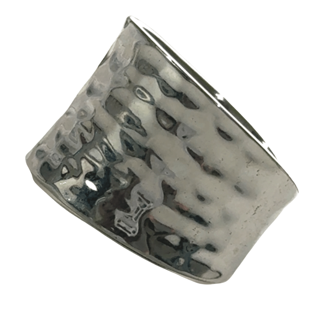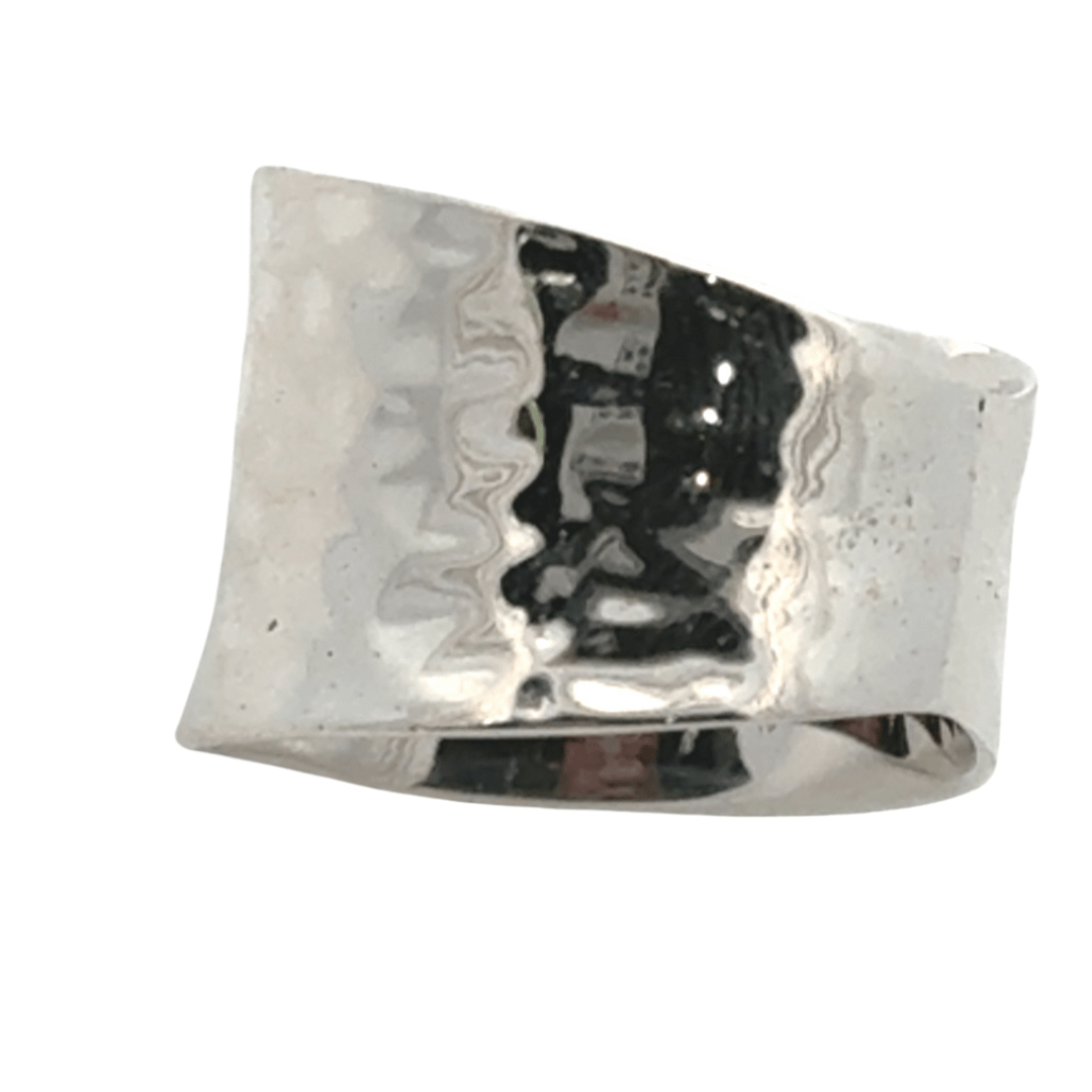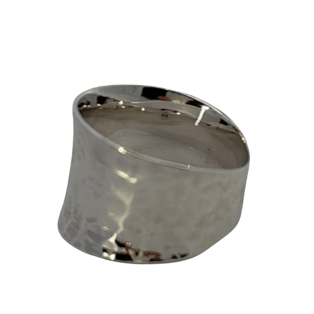 This stunning beaten silver ring embodies the ebb and flow of life. Crafted from beautifully beaten silver, this ring features a striking yet simple design that catches the light with every movement, creating shimmers in the light.