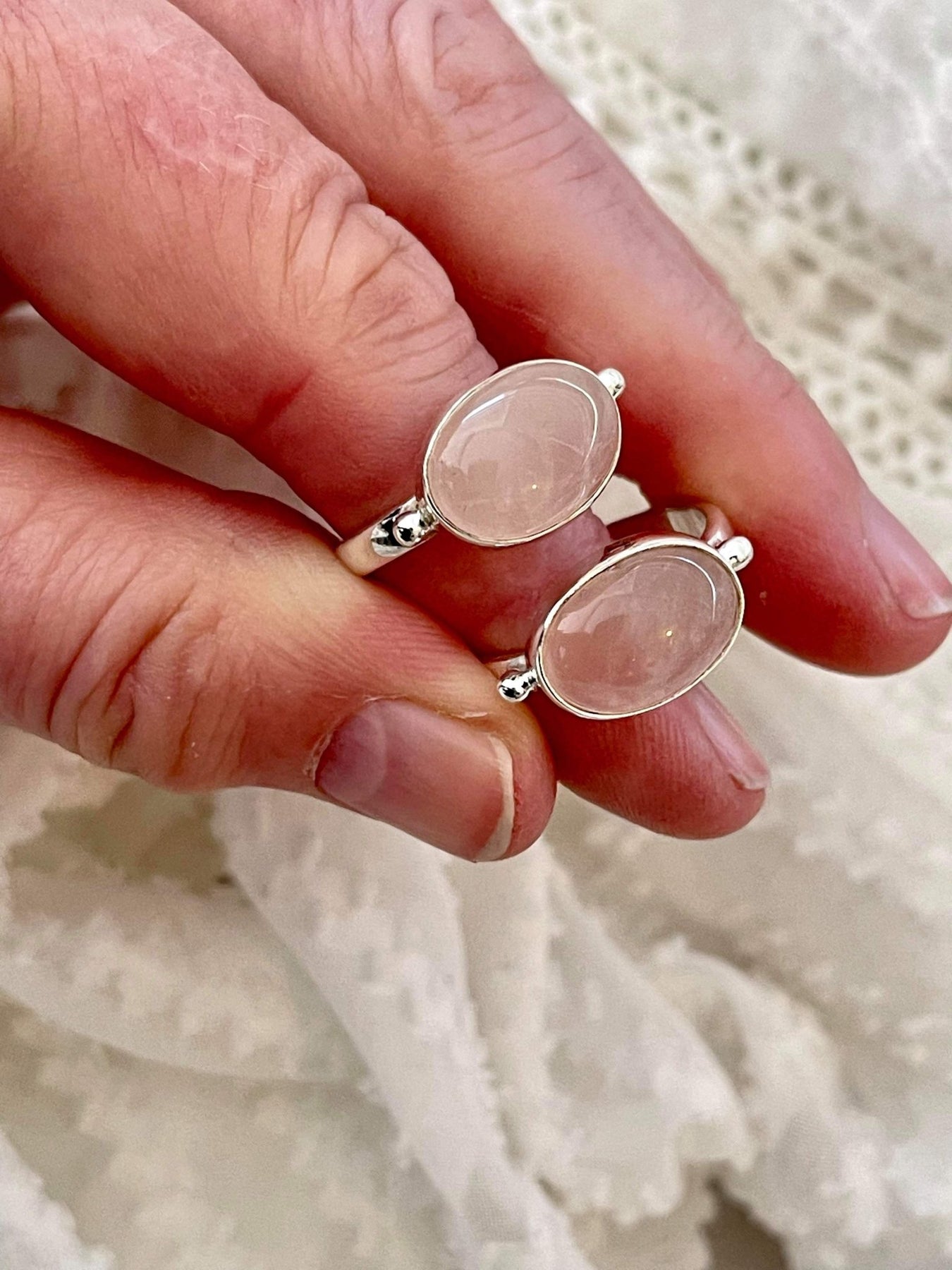 These gorgeous pink blush rose quartz cabochon rings are a new addition to our Eclipse Collection and we are sure you are going to love them. They are made with the romantic rose quartz gemstone, which is one of the most popular when you want to attract love and compassion into your life.