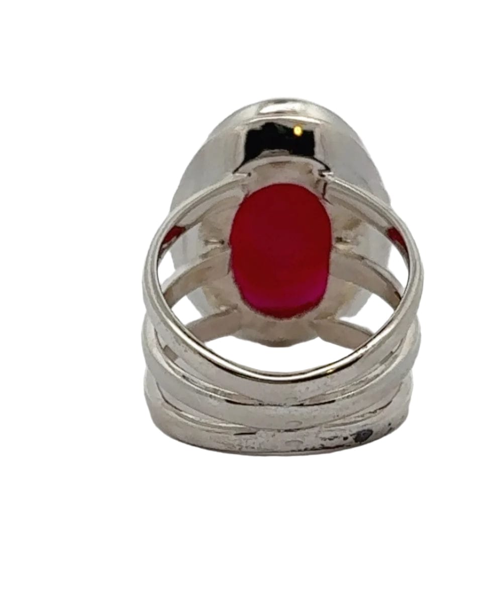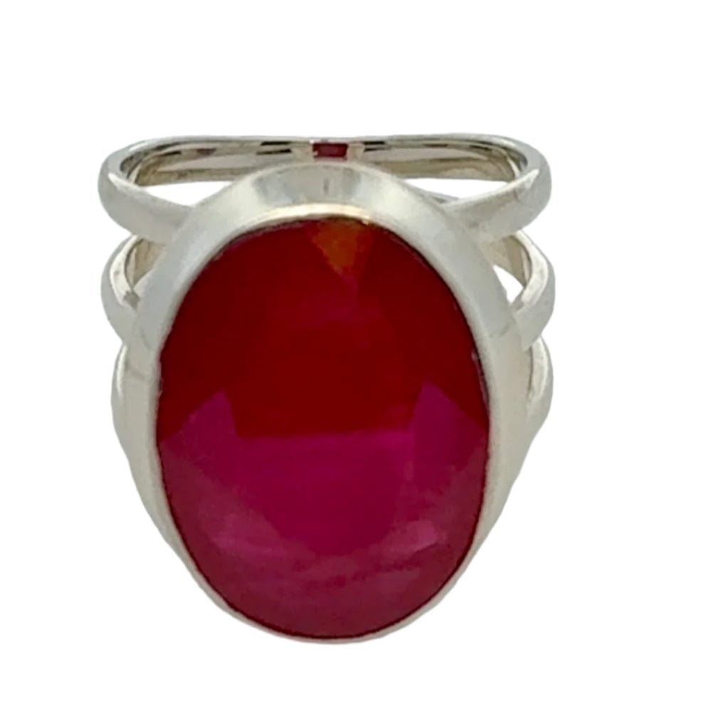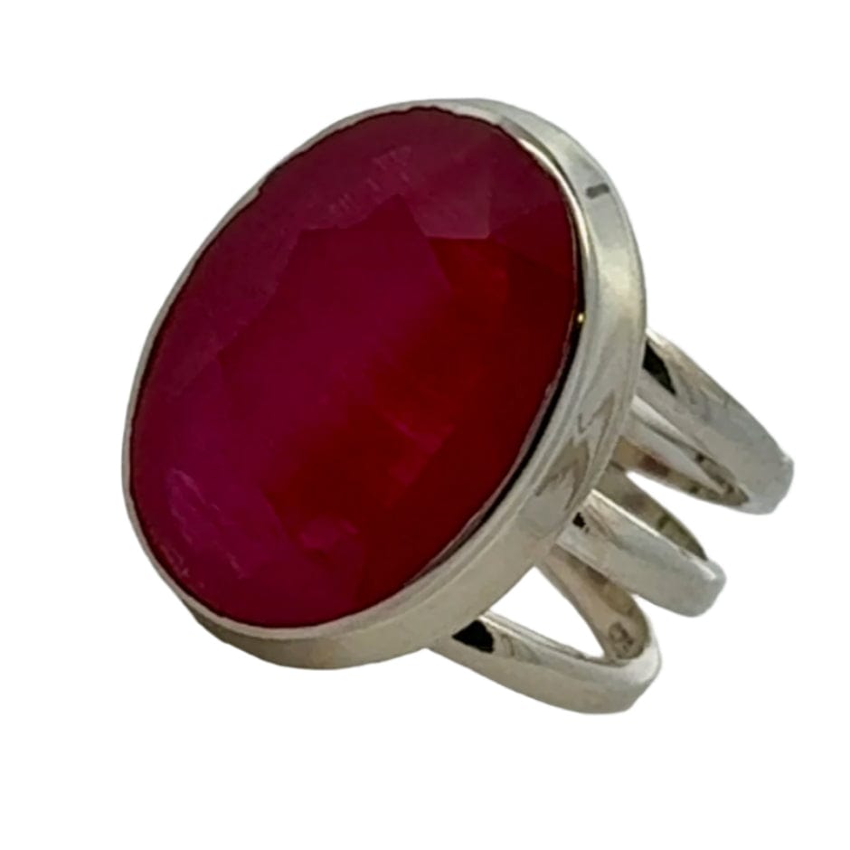 The Ruby Toru Ring is a power piece. With a vibrant 20 x 15 mm ruby quartz as the centrepiece, this statement ring radiates confidence and energy in every direction.
