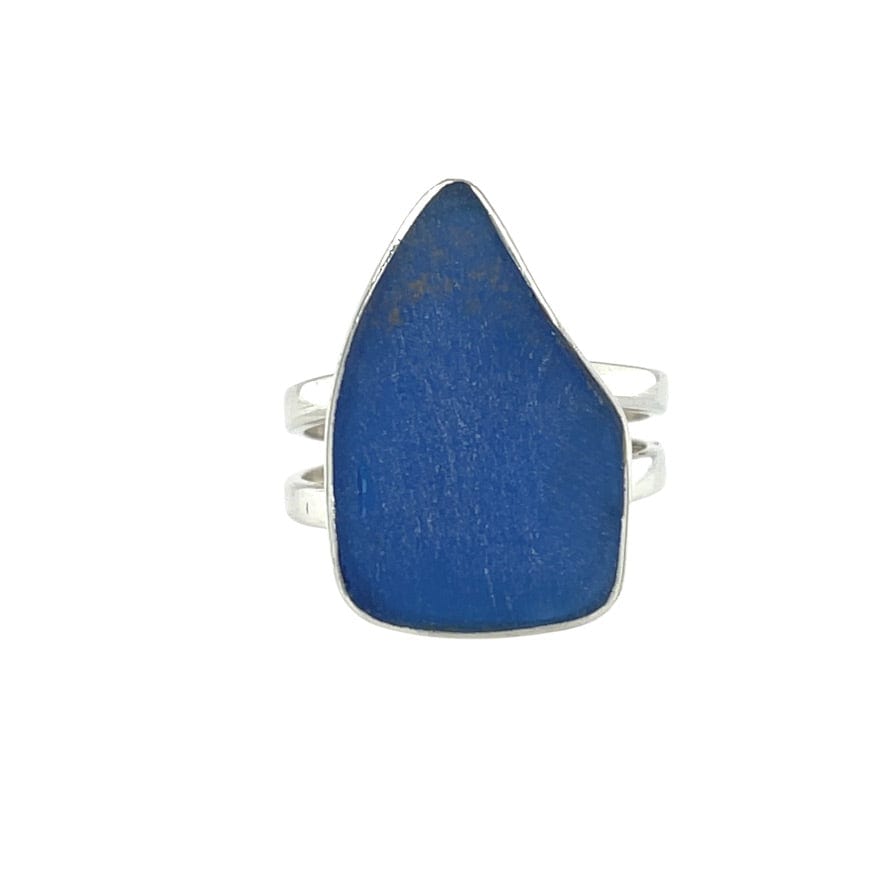 The glass is sourced from beaches in Indonesia, helping reduce unwanted litter in the Pacific and Indian oceans. Our artisans collect glass scraps by hand. The tumbling from the waves soften any sharp edges for a muted satin finish. The sterling silver twin bands come together to create a sturdy yet comfortable fit on your finger.