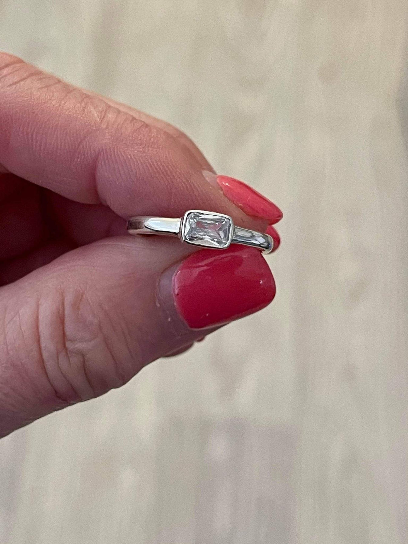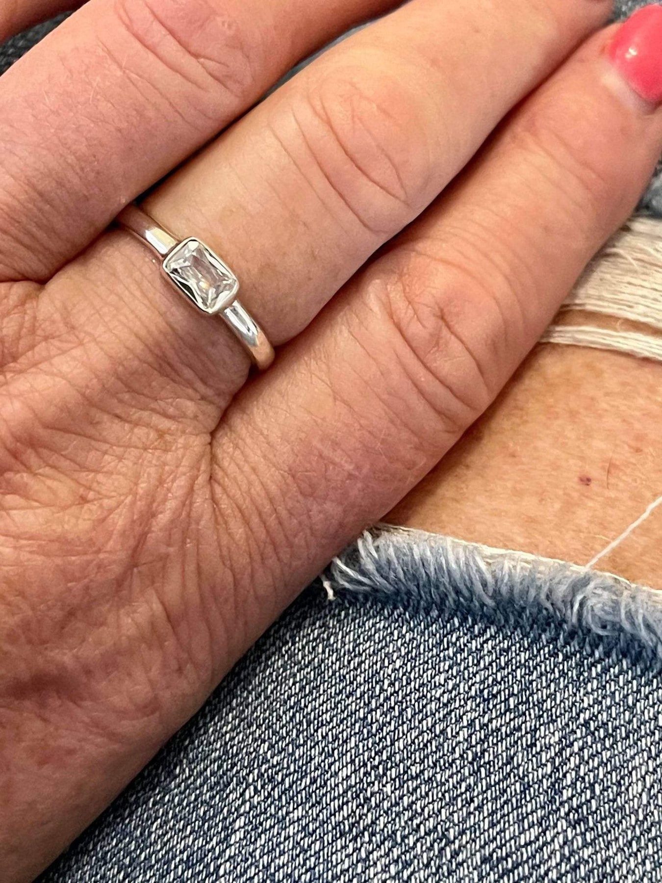 Sometimes simple is better and you'll just love this uncomplicated yet stunning dainty emerald cut ring. This gorgeous ring is made using high quality sterling silver and contains one emerald cut clear quartz gem measuring 6 MM x 4 MM.