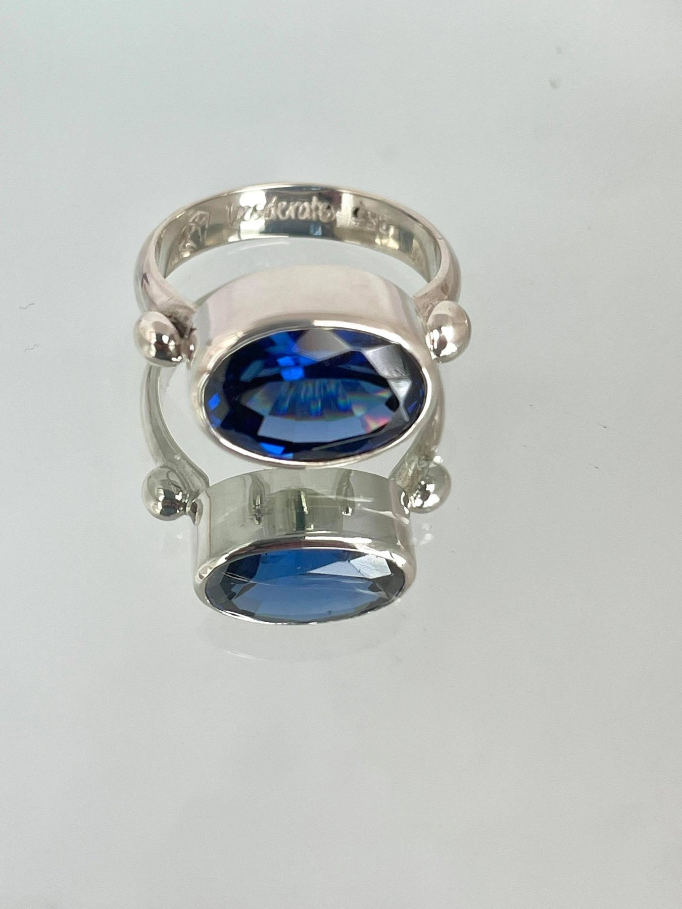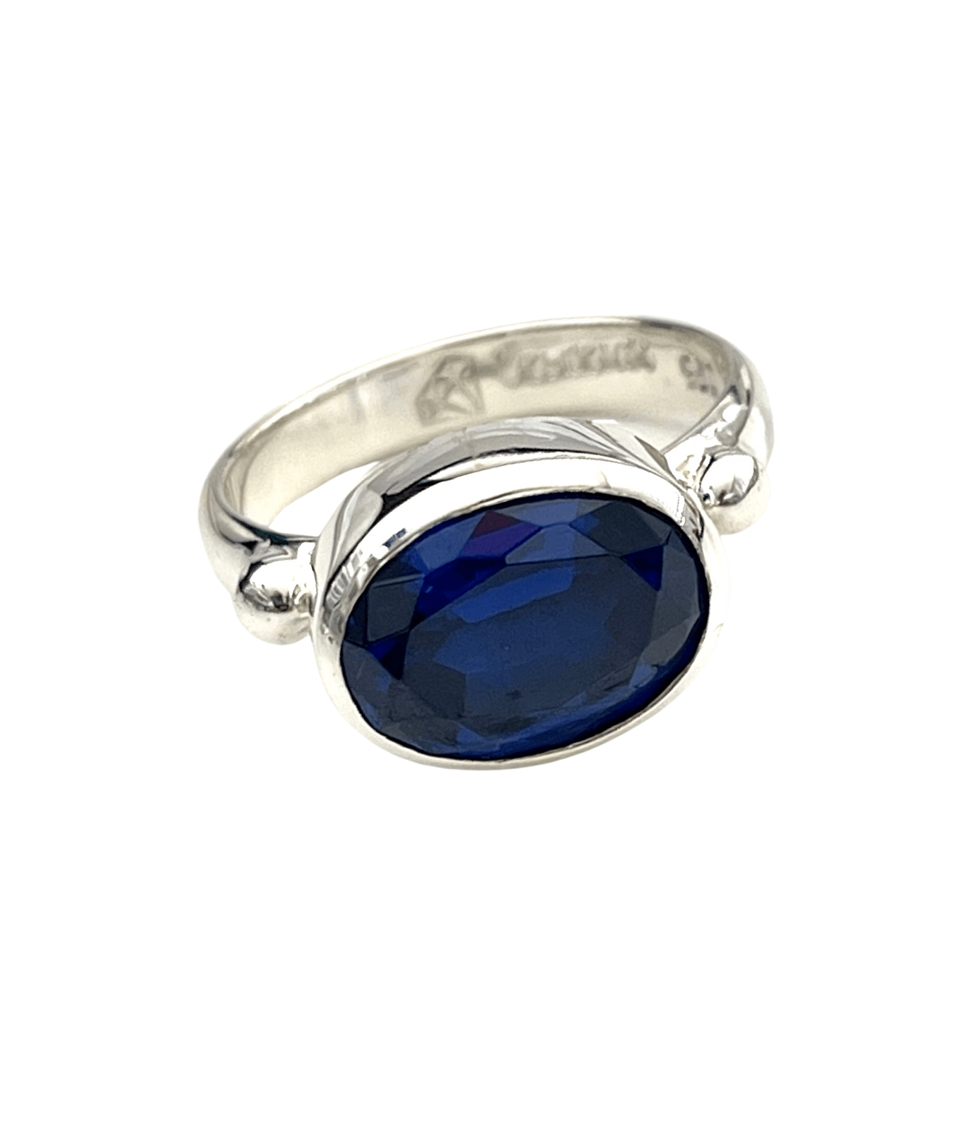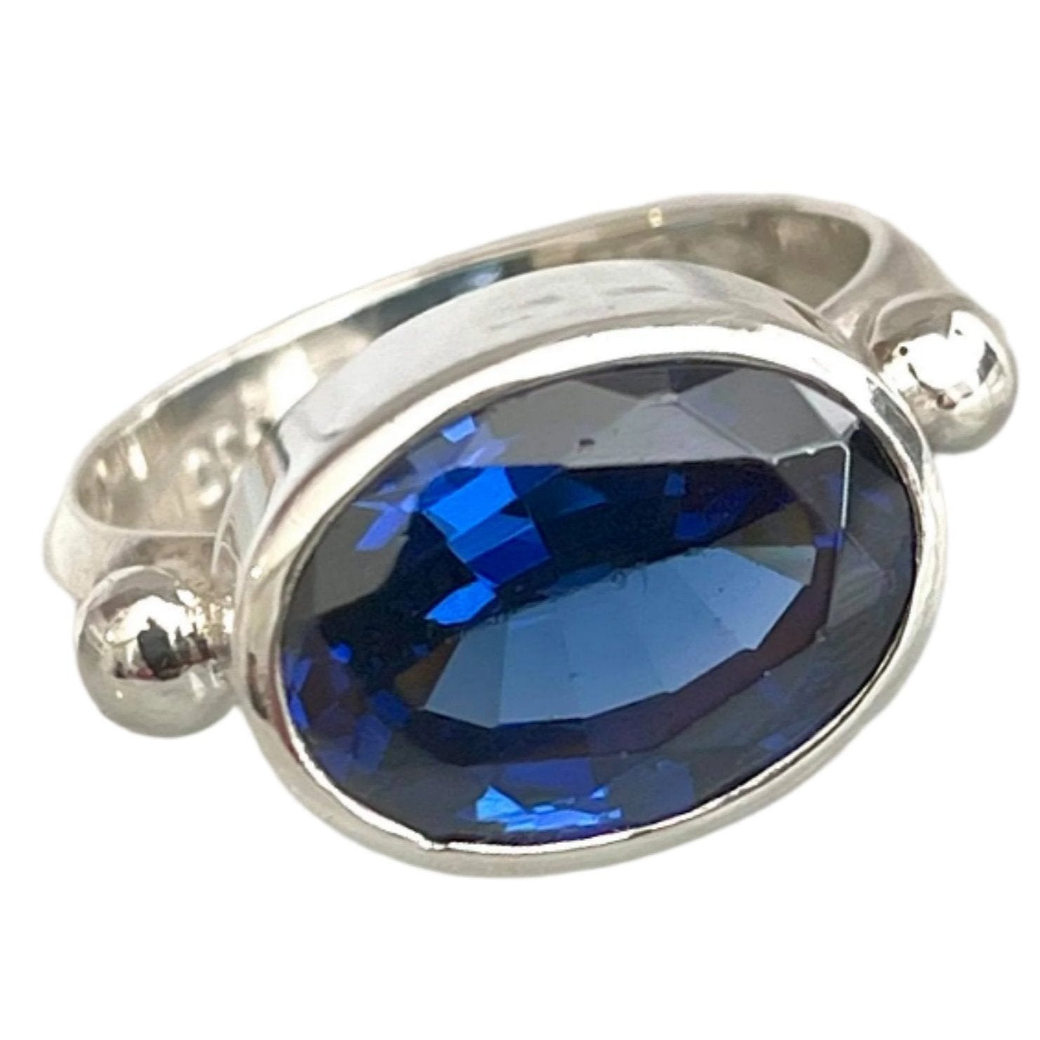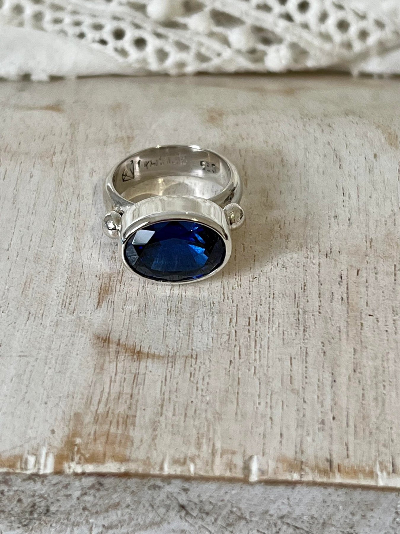 This gorgeous sparkly sapphire quartz ring will dazzle your senses. The intense blue luminosity of colour will draw you in, hypnotising you and engaging in your every delight.