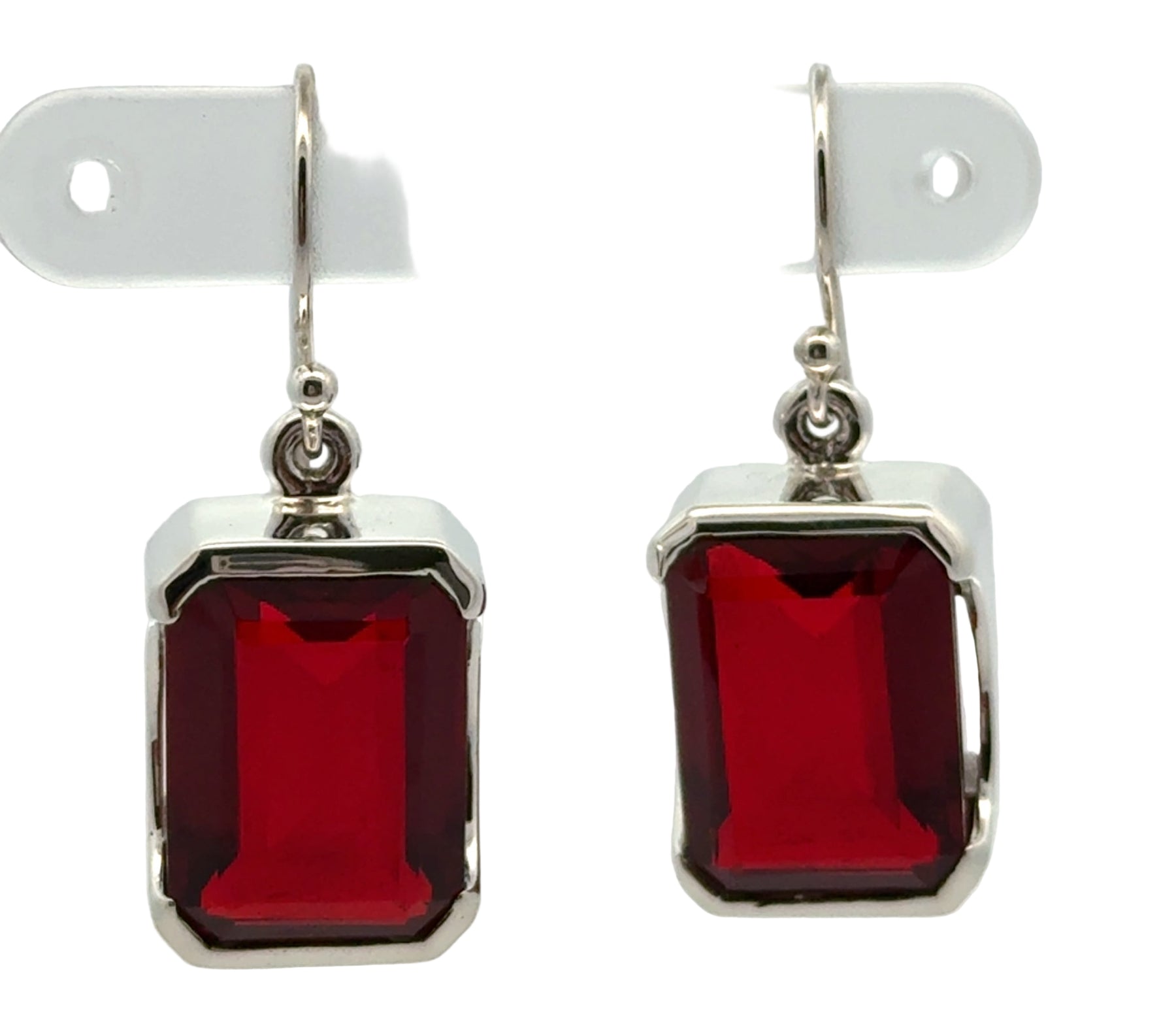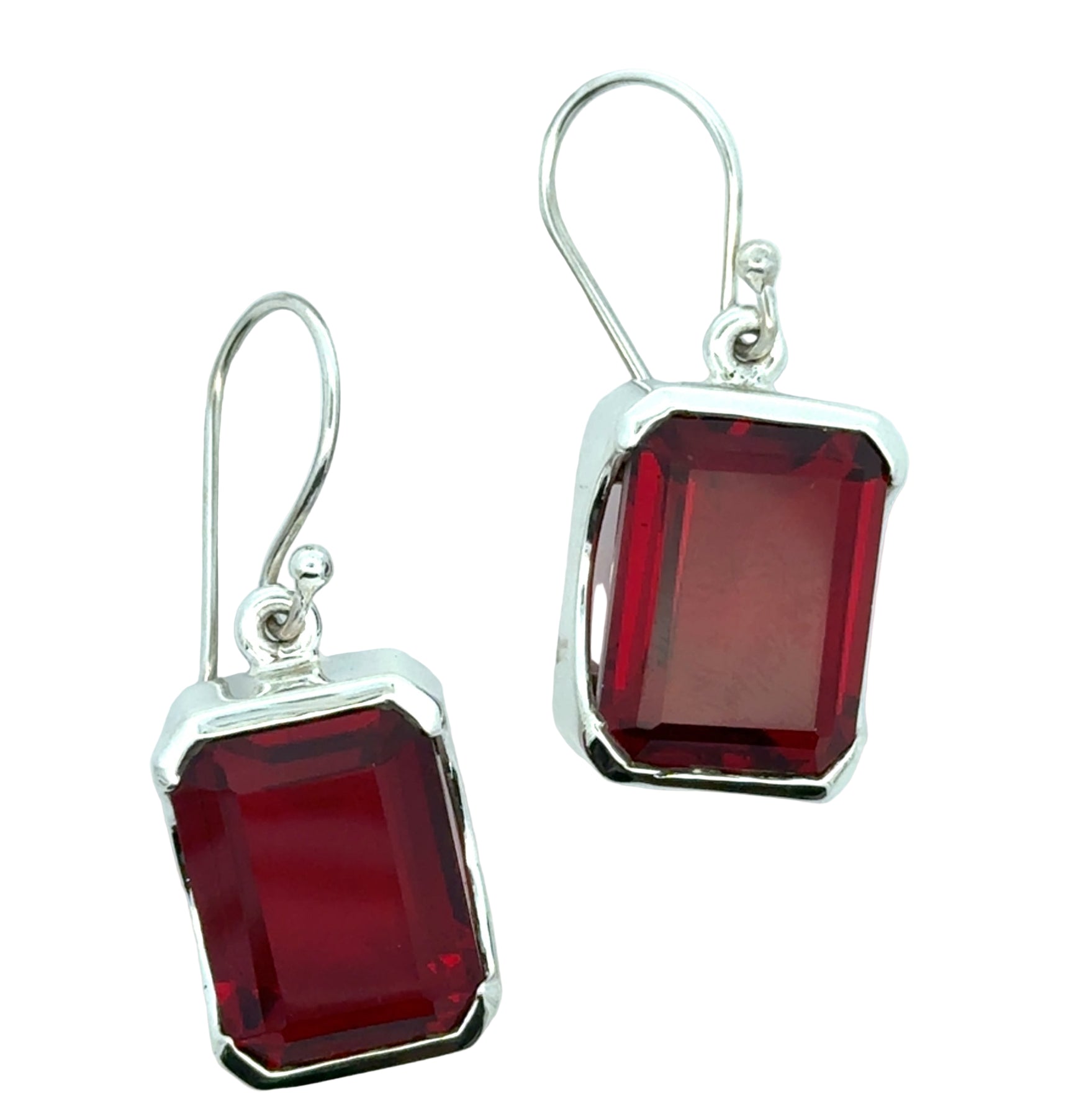 The Bold Garnet Earrings command attention with their breathtaking beauty and rich, red allure. Each earring features a striking 12 x 16 mm natural garnet, expertly emerald-cut to enhance the stone’s fiery depth and brilliance. Set in handcrafted sterling silver, these earrings are both luxurious and comfortable, bold enough to make a statement, yet refined enough for timeless elegance.