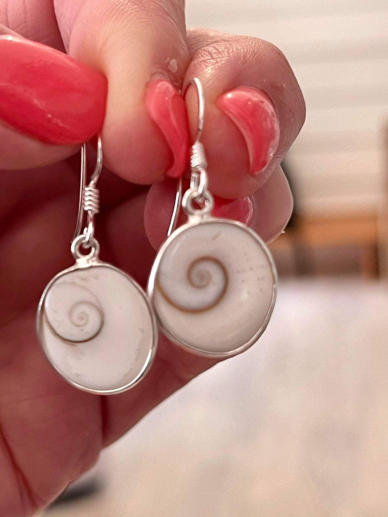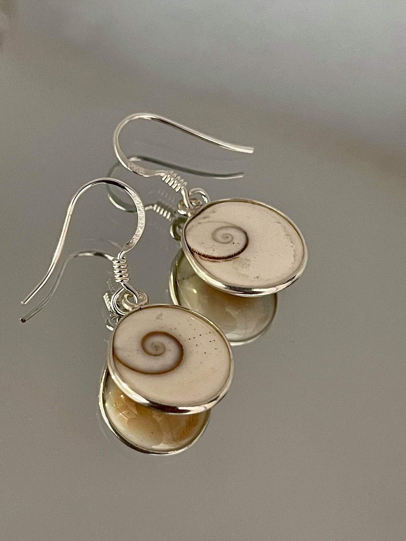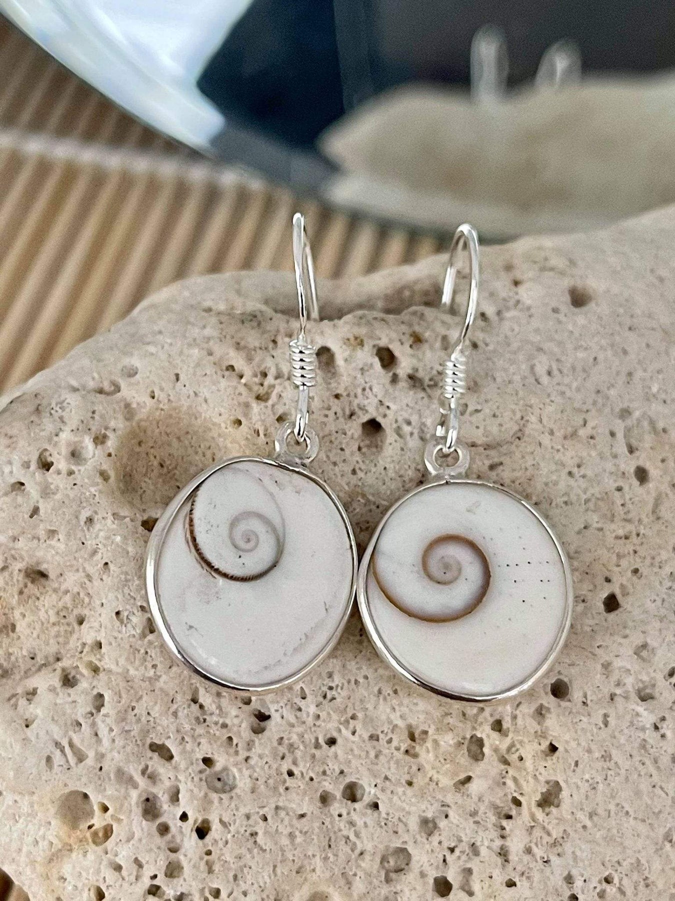 The Shiva Shell is regarded as a lucky charm and protective stone. The swirl which occurs naturally is beautiful and Shiva Shell Earrings are perfect for beach and nature lovers.