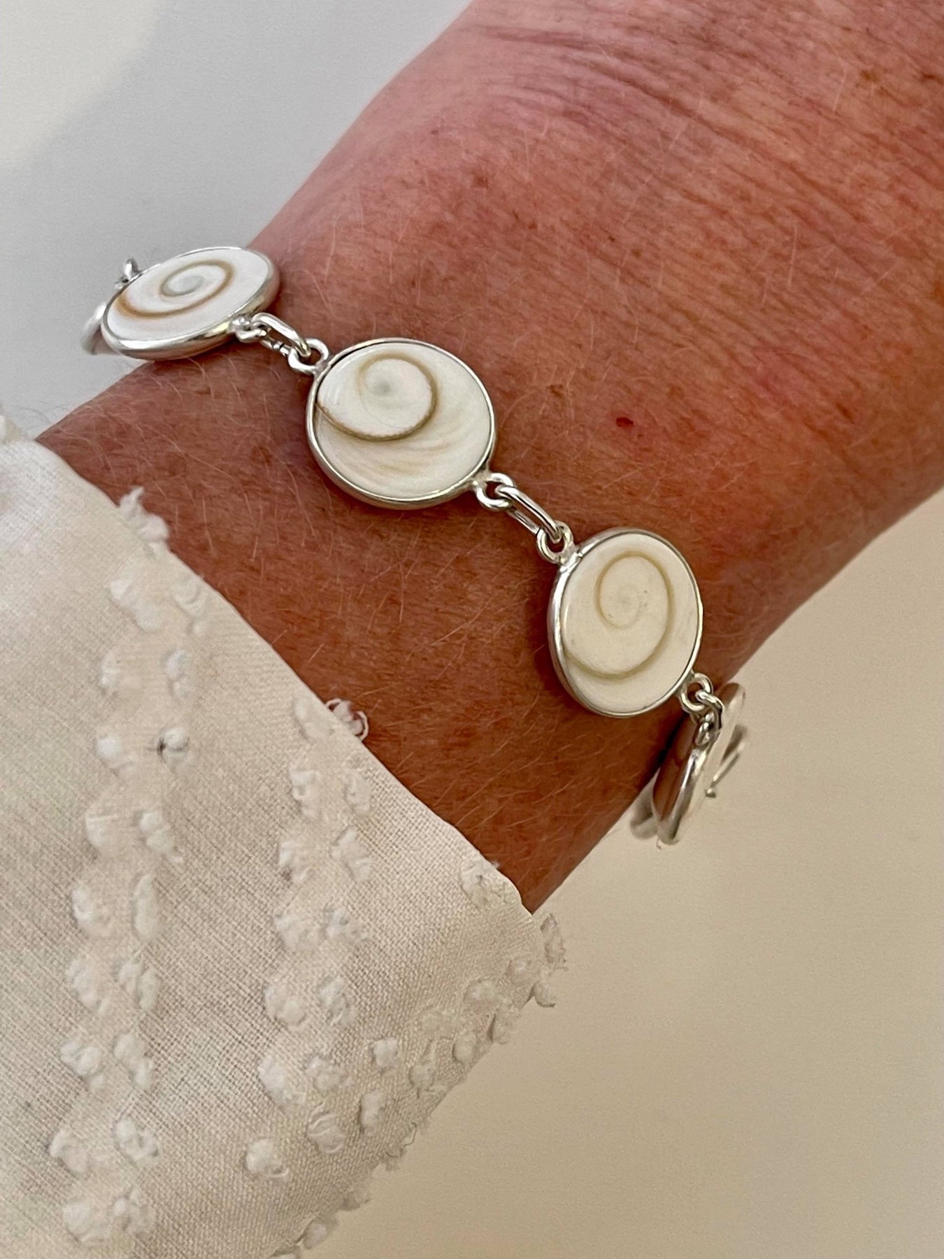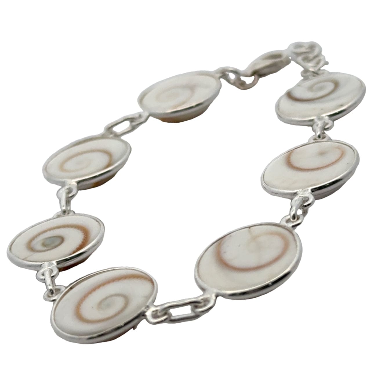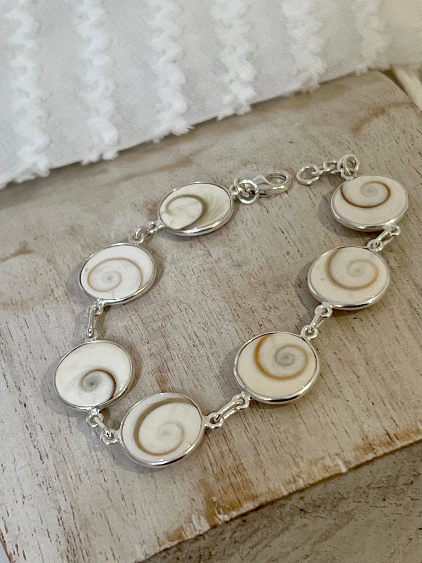 The shells are collected and then handcrafted with sterling silver to create a gorgeously delicate and attractive bracelet. It is said shiva shell's repel negative energies and is great stone for overall protection.