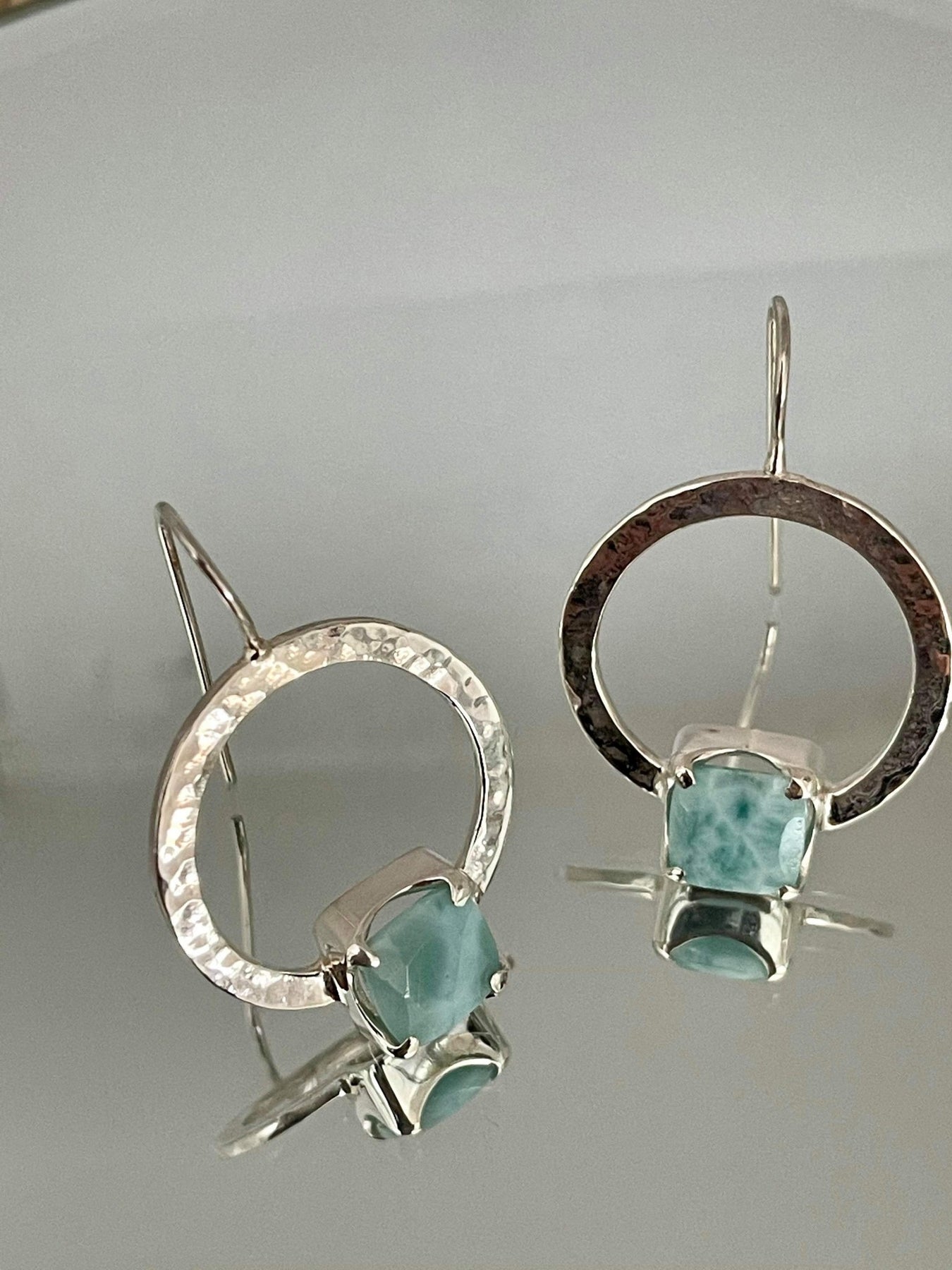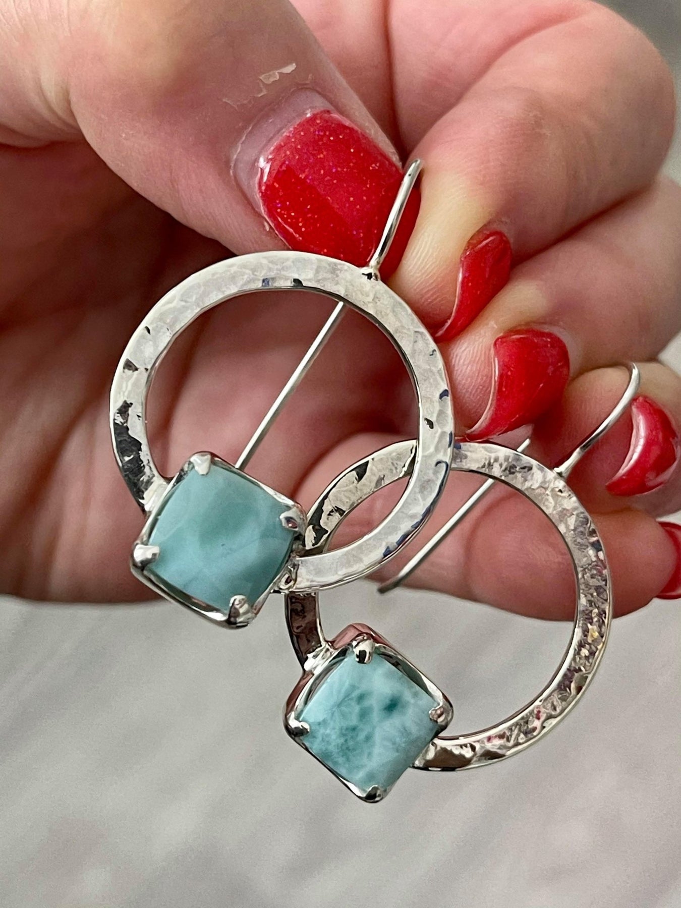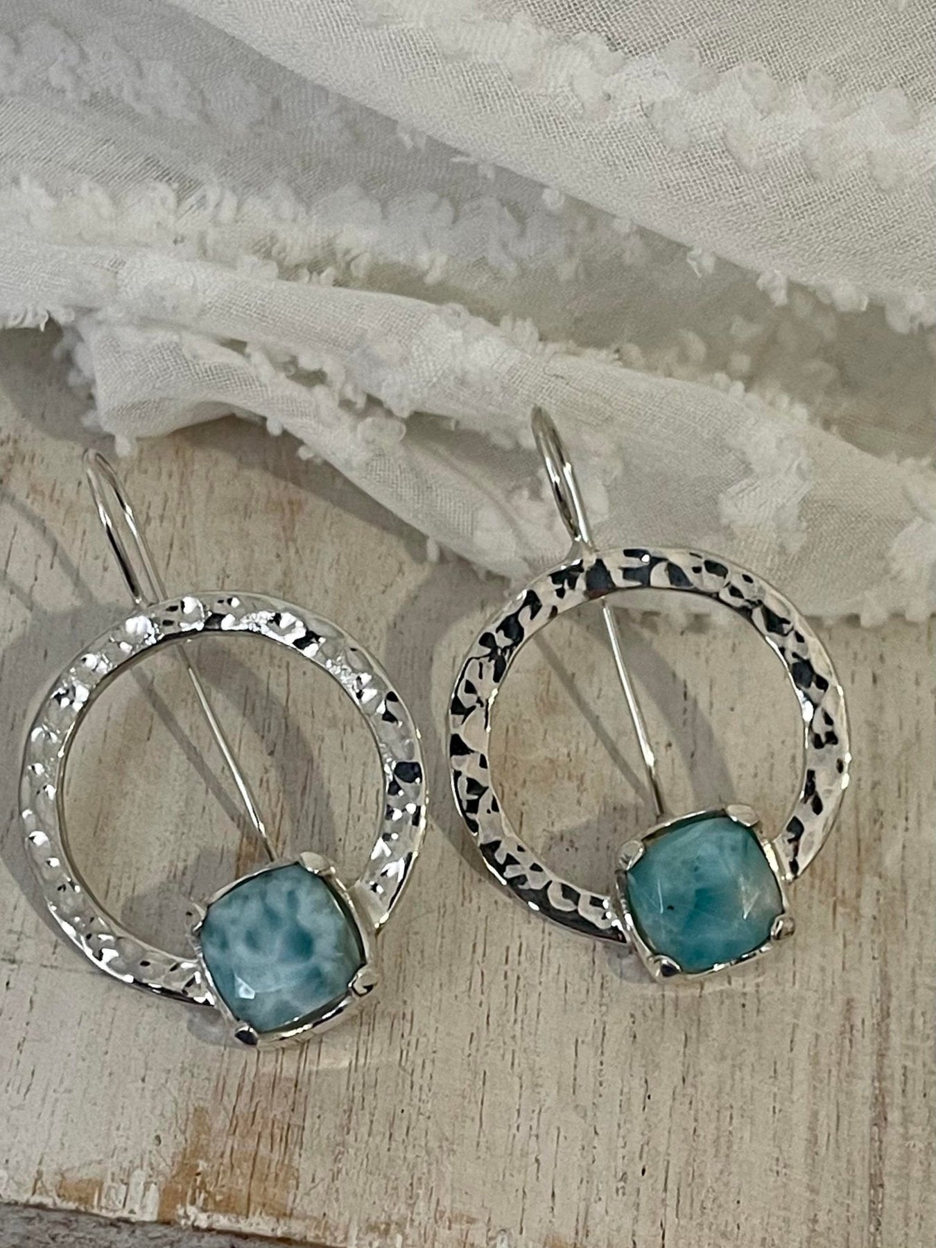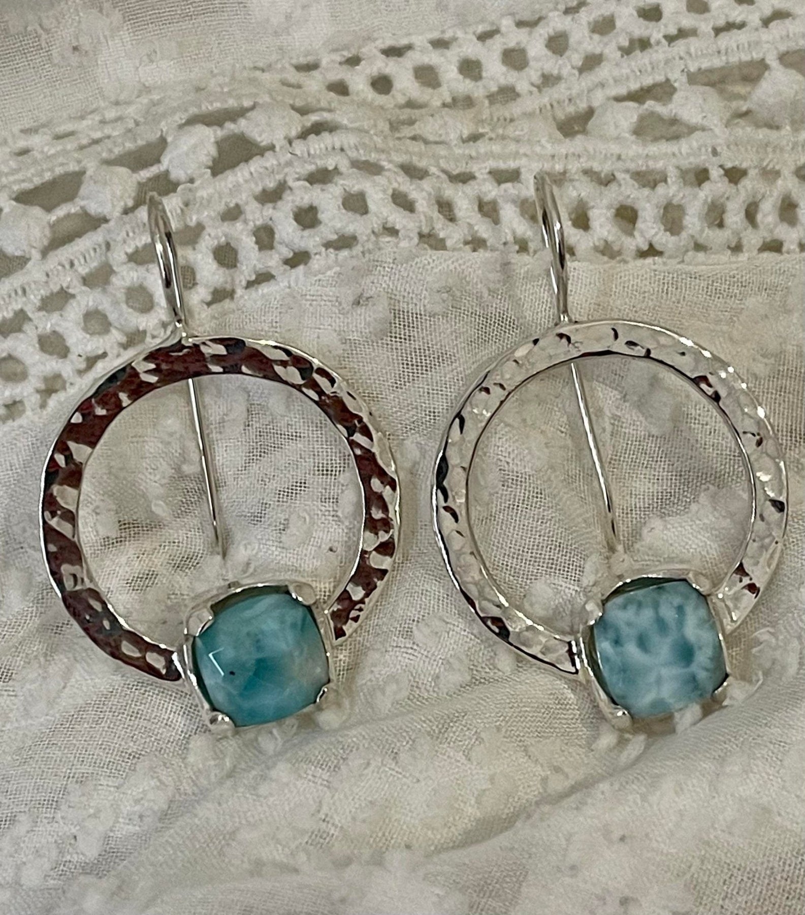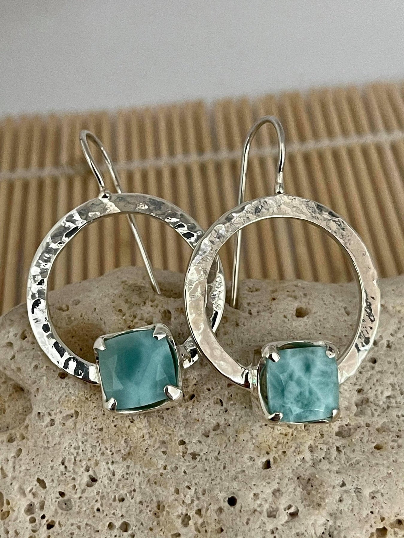 Feel cool, calm and collected when you have these beautiful Larimar Hoop Earrings on. Larimar is said to be a wonderfully magical and positive stone and you'll perhaps feel the benefits whenever you wear them.