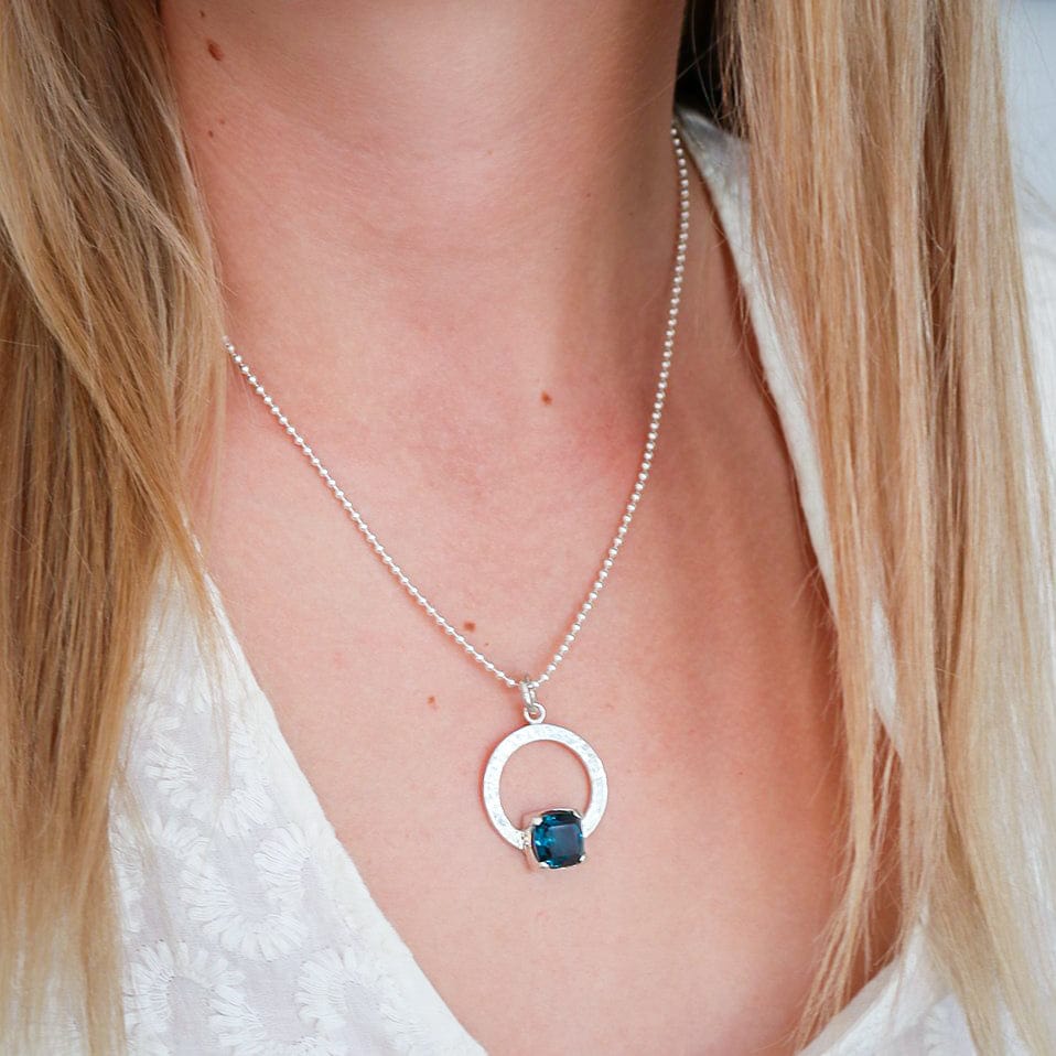 This sparkly gemstone pendant looks good short or long, casual or classy, everyday or special occasion. This London Blue Topaz pendant is sleek and modern with a bohemian vibe.