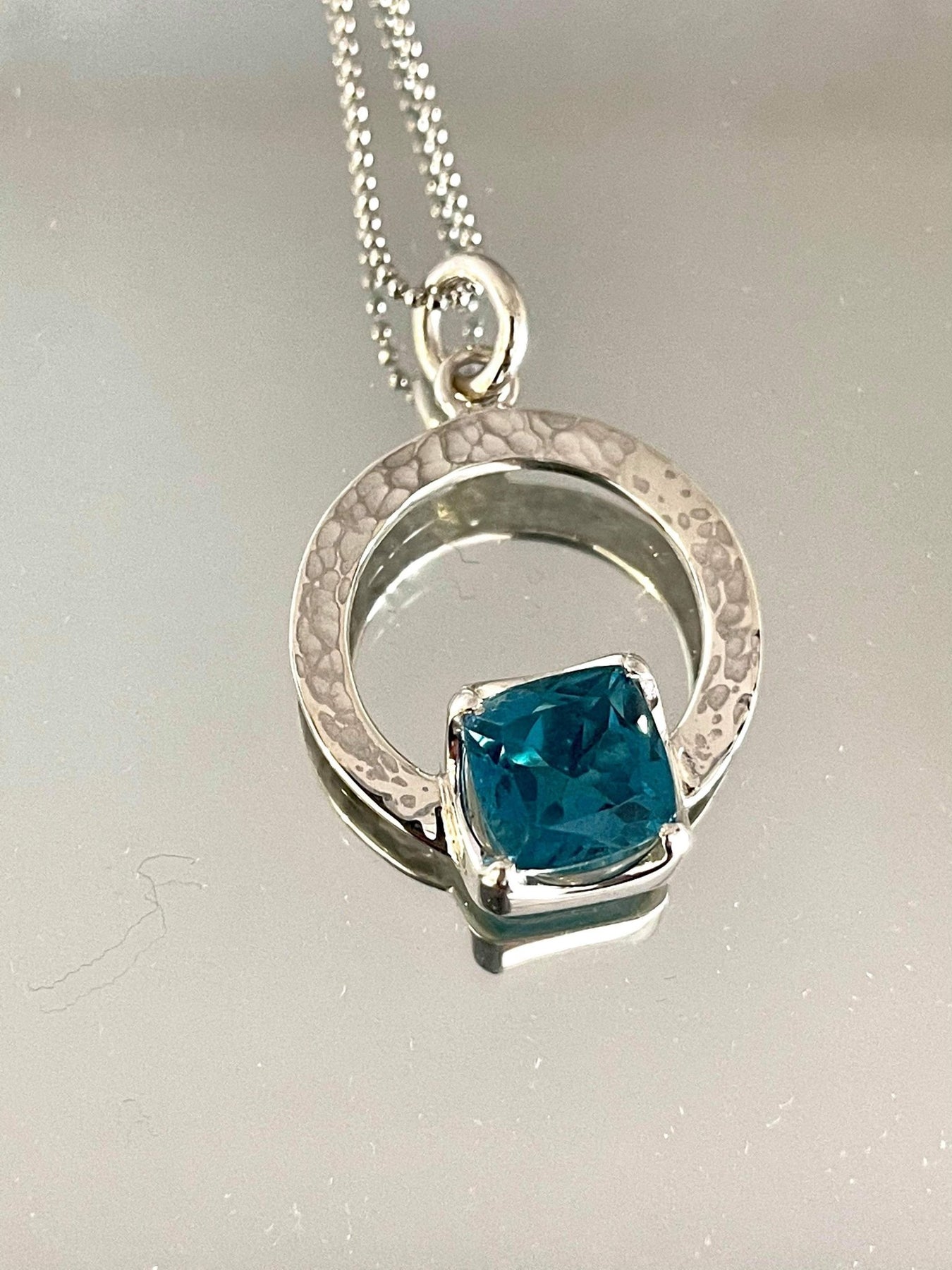 CLICK HERE TO SEND SOMEONE A HINT YOU'D LOVE THEM TO PURCHASE THIS FOR YOULONDON BLUE TOPAZ - BEATEN SILVER PENDANT