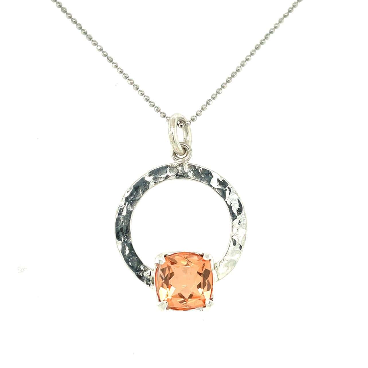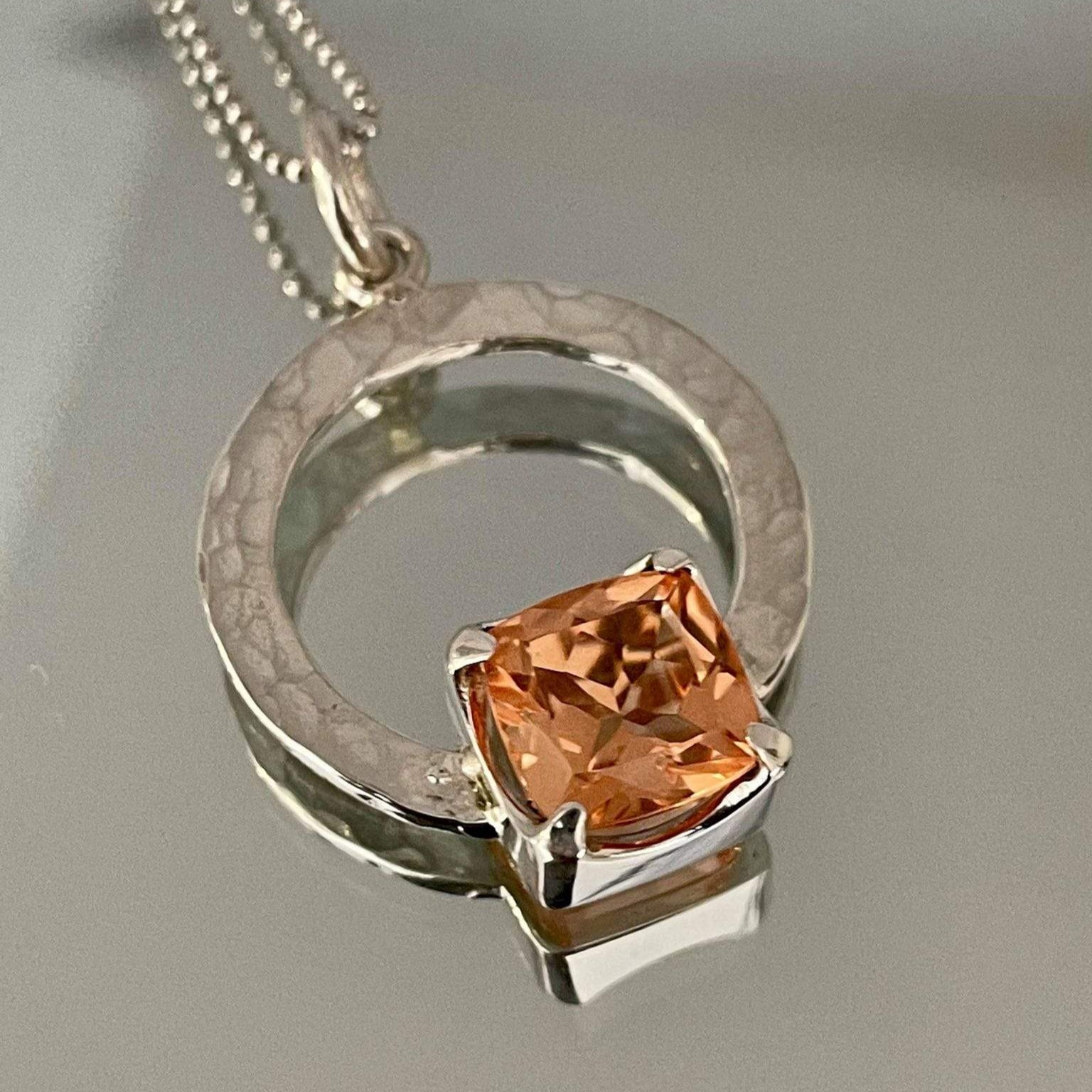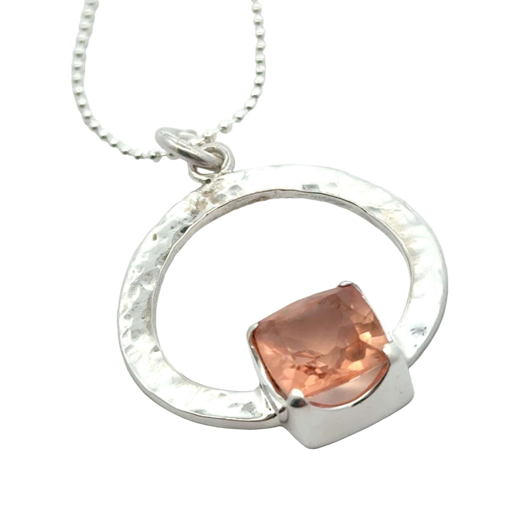 If you have a bit of a quirky streak when it comes to taste in jewellery, well not super quirky, you just like to be unique and have an original design, that you won't see everywhere... Then this morganite quartz pendant in beaten silver has your name all over it!