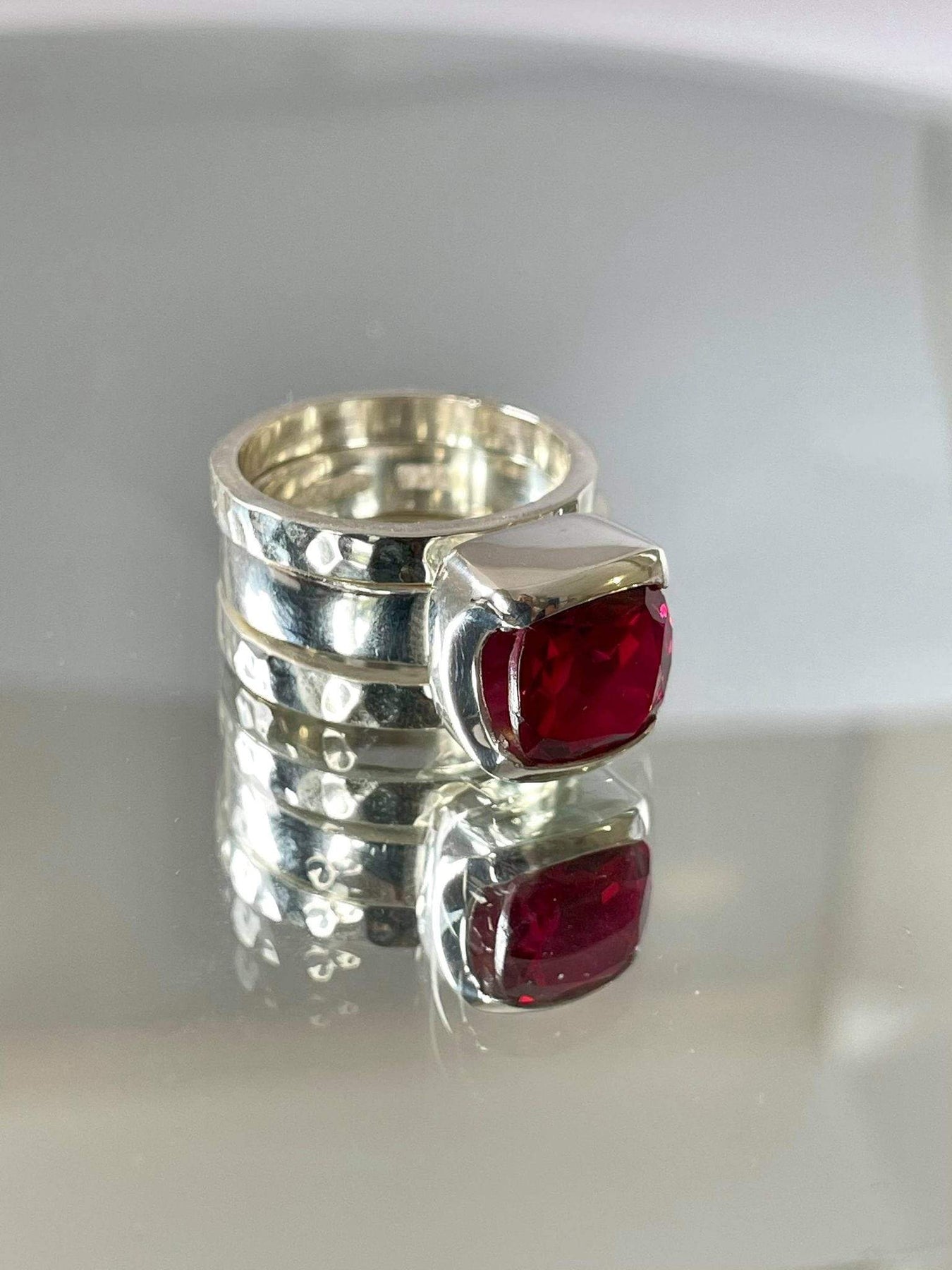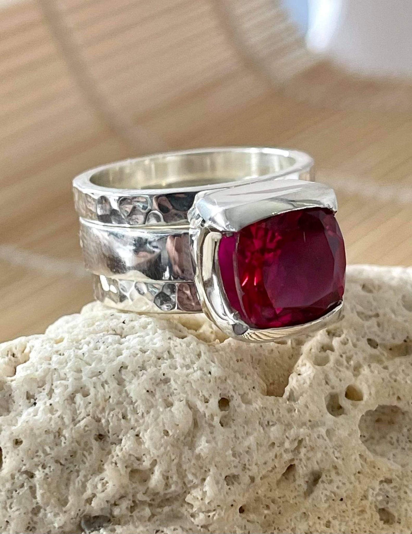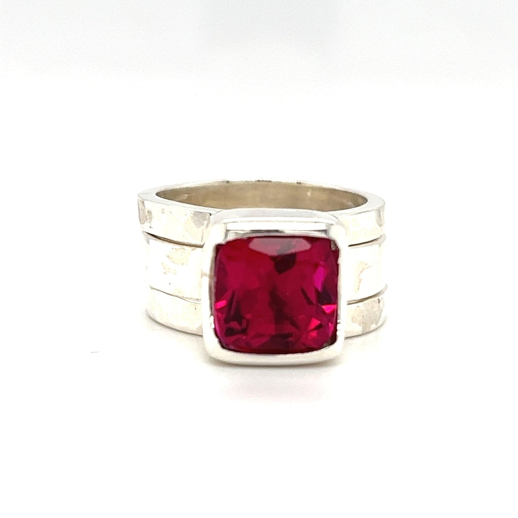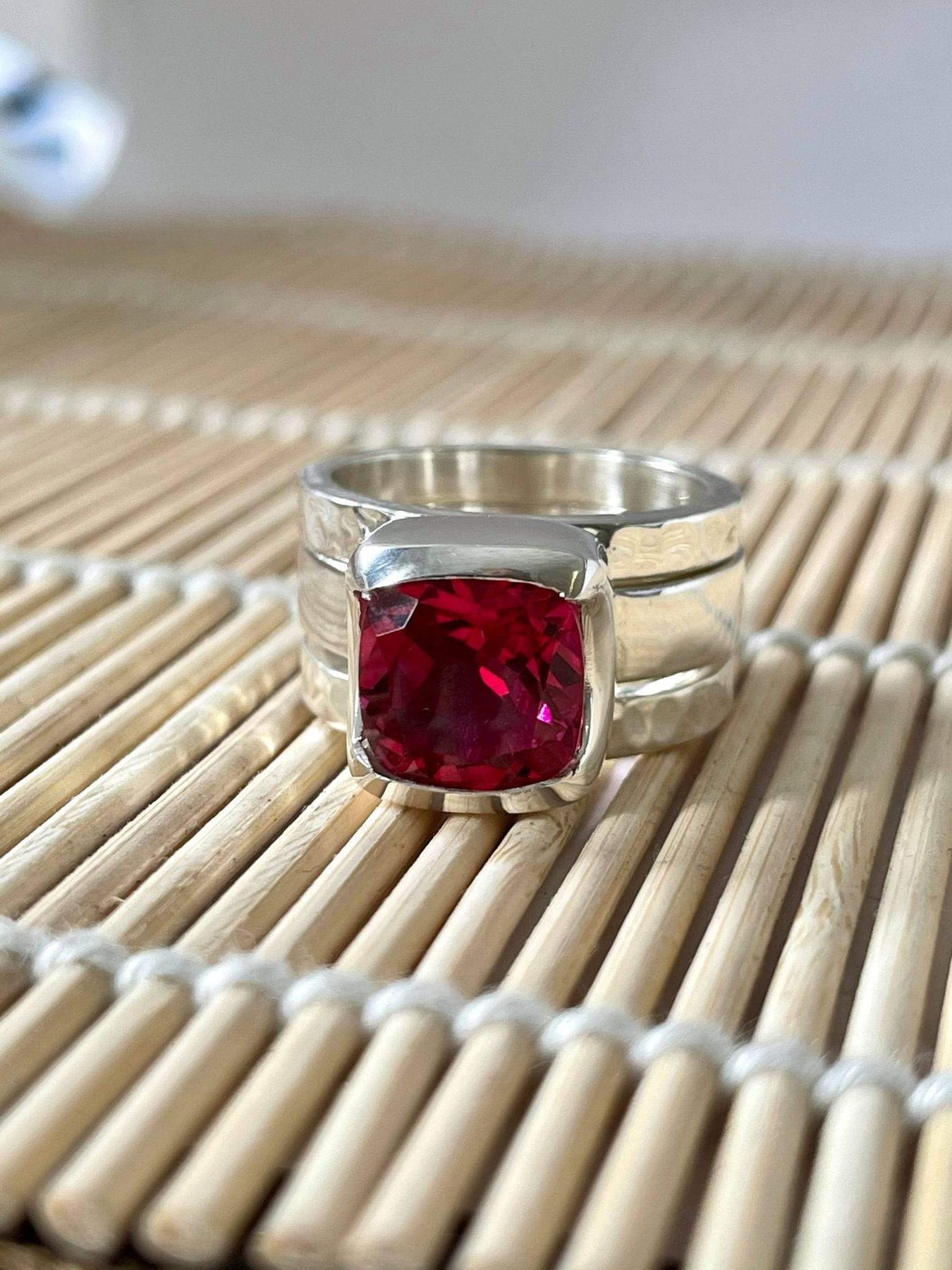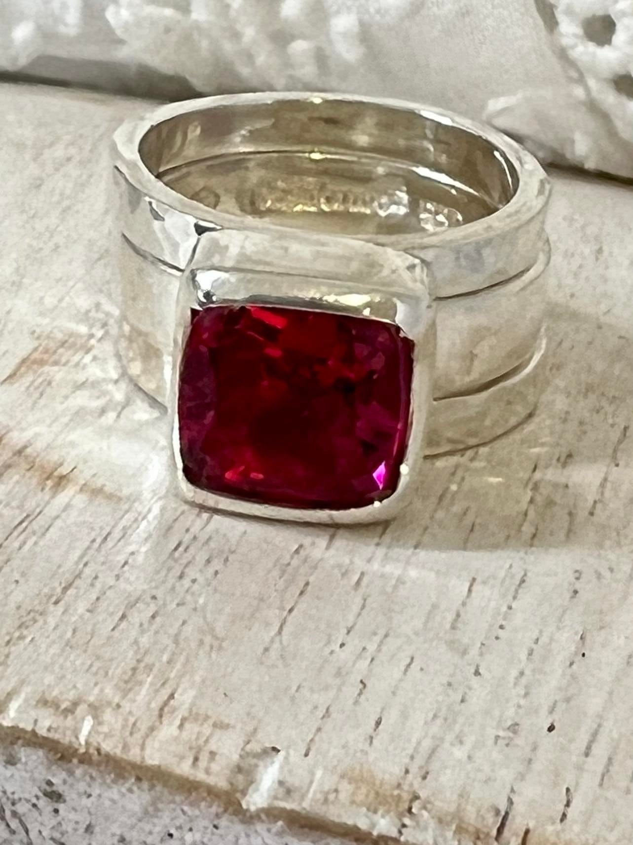 SQUARE CUT GEMSTONE RING - RUBY CORUNDUM RING