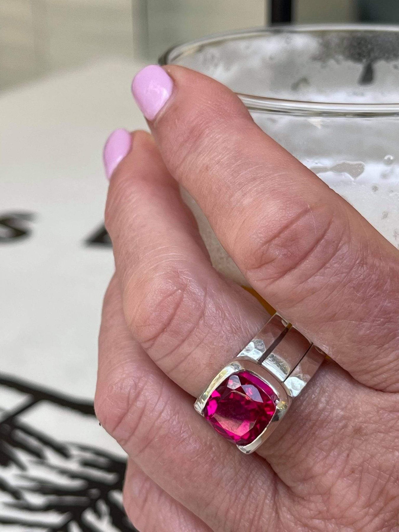 This jaw-dropping gorgeous radiant red ruby corundum ring is seriously cool. When details matter and you want a unique piece that stands out, this one is head-turning.