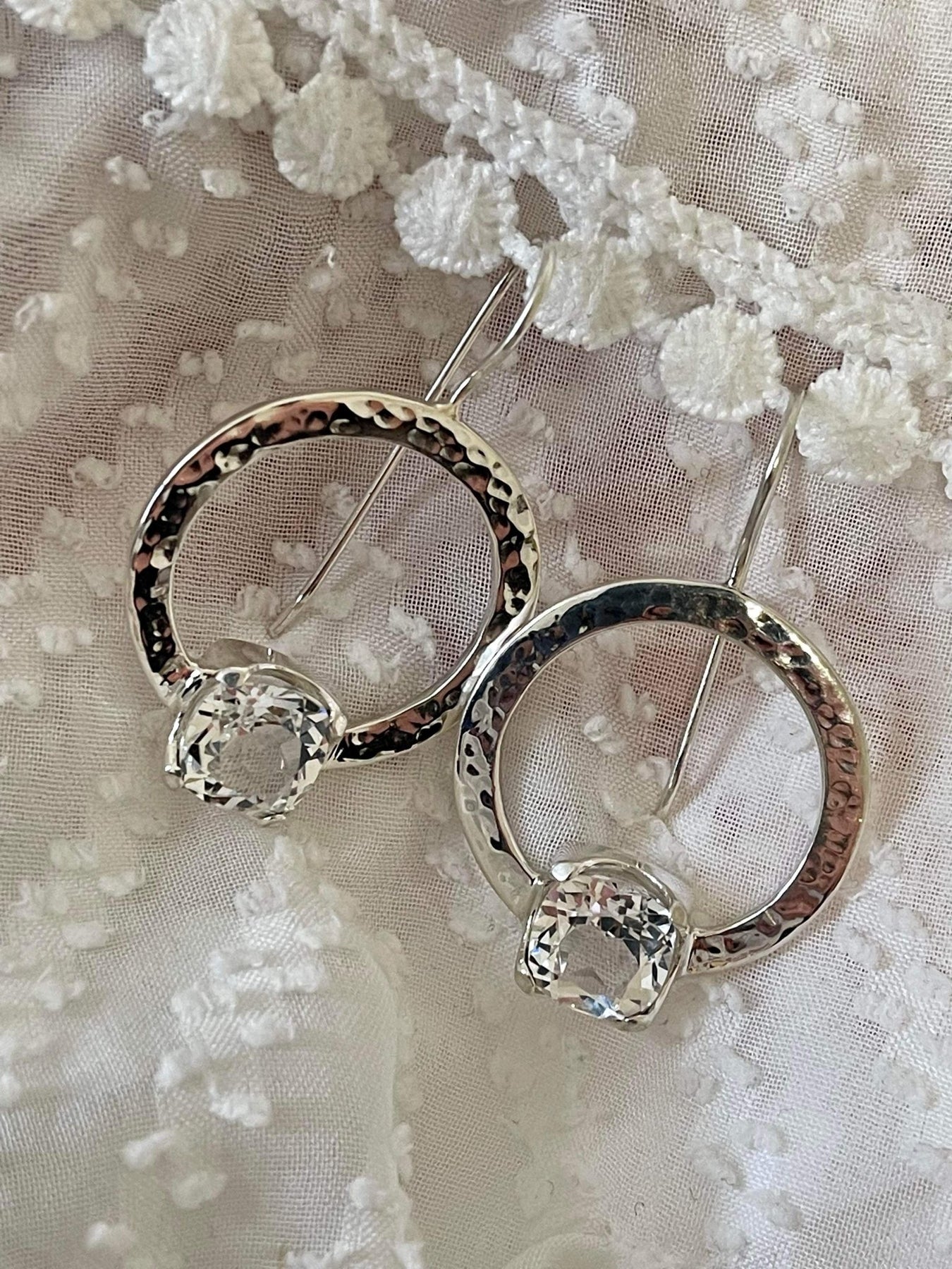 Kiara Absolutely love my Trilogy Hoops. The beaten silver with the topaz shimmer is such a unique combination. They go with everything