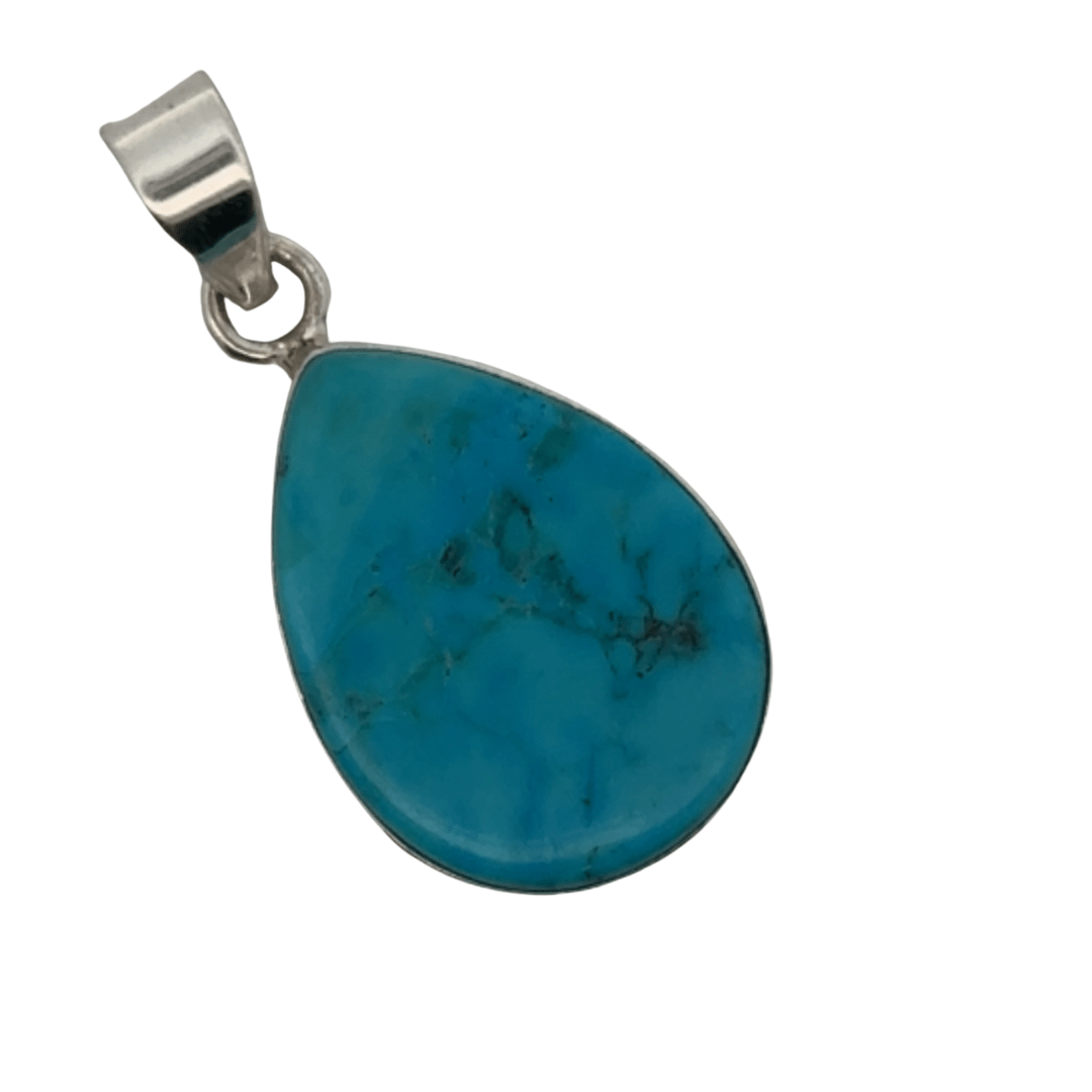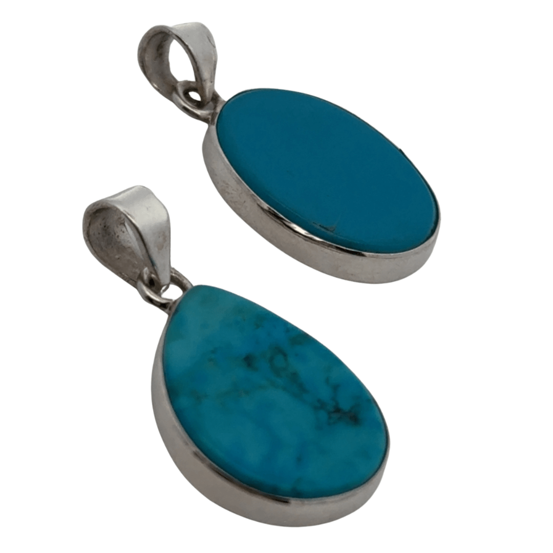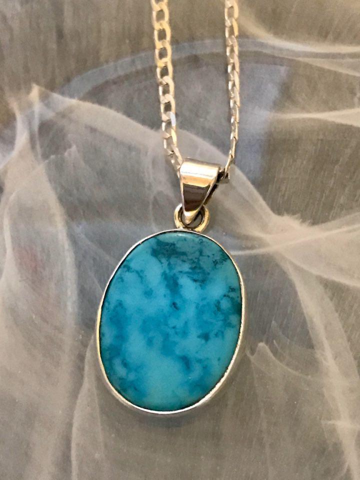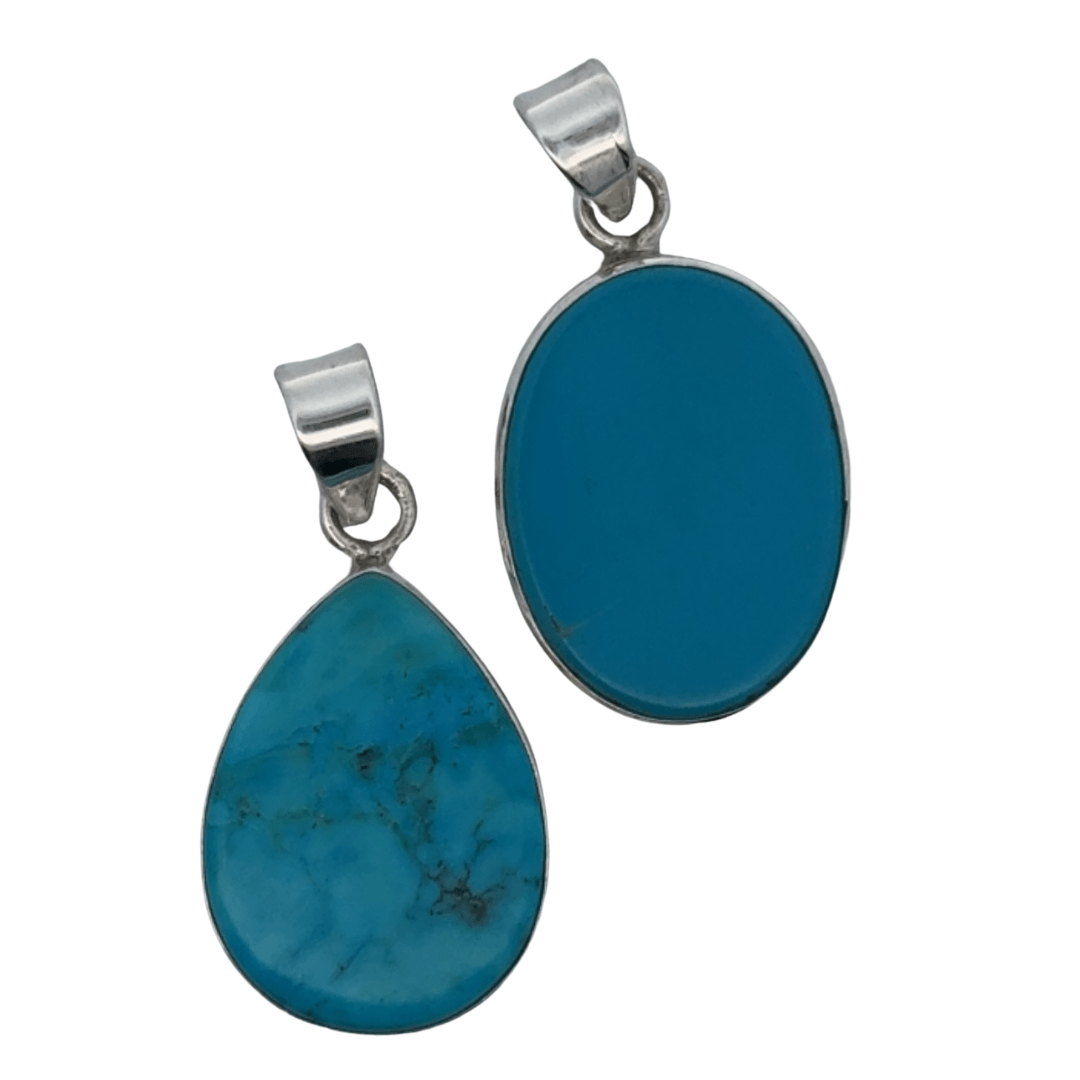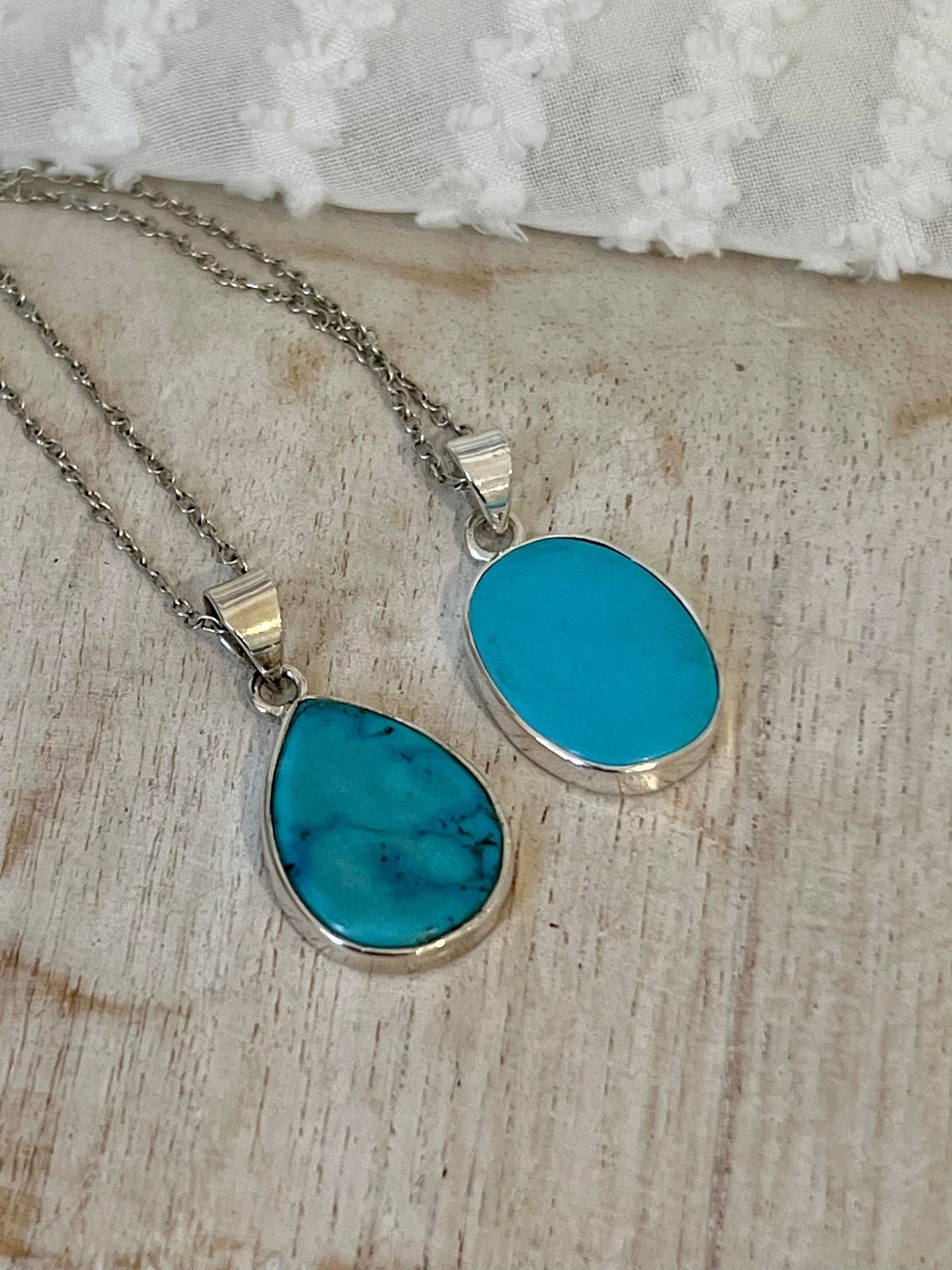 Every pendant is uniquely different because all of the natural Turquoise stones have their own shape.