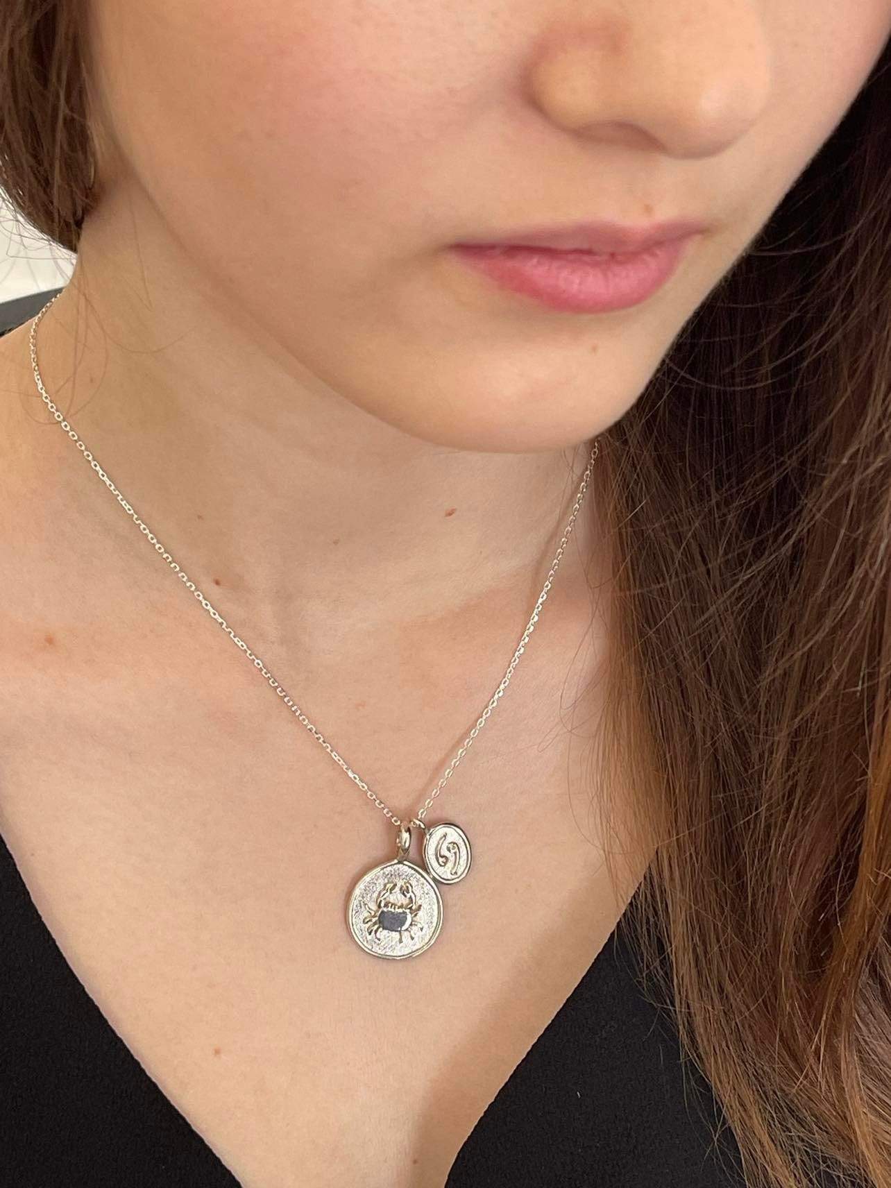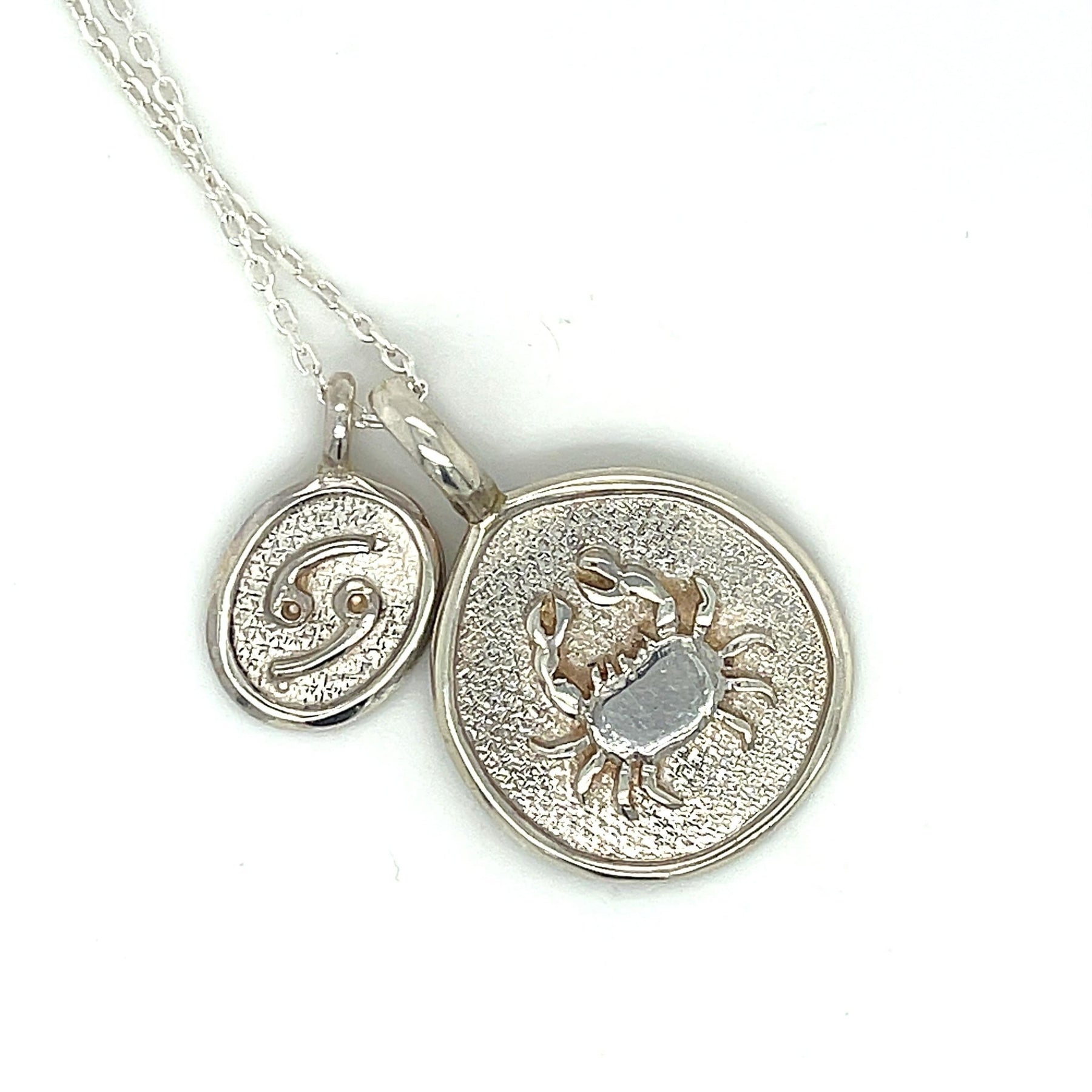 These pendants come with two charms, one of the crab and one of Cancers Glyph and have been designed to be worn together, or separately. The choice is yours.