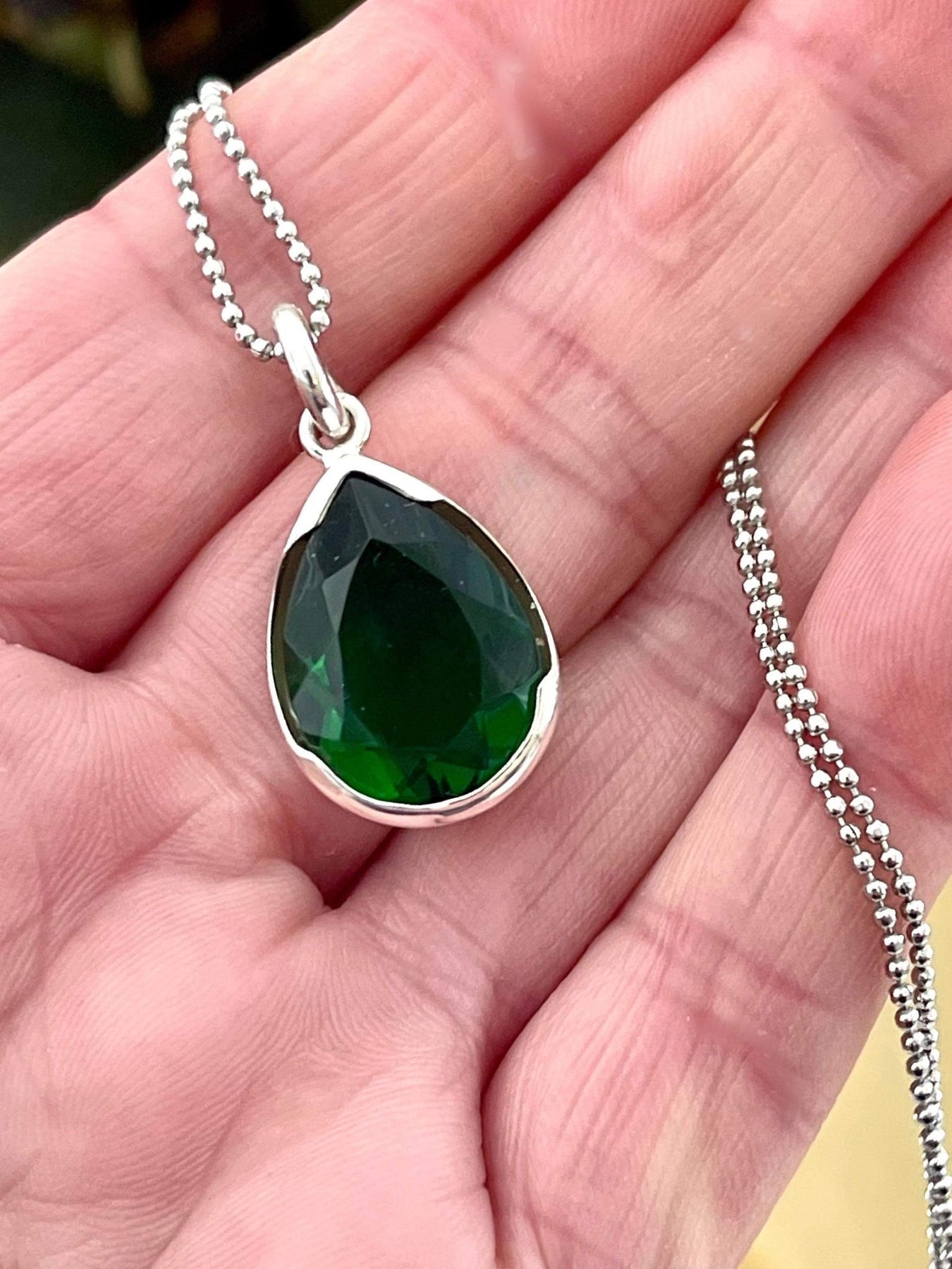 Our fabulously gorgeous Mahtava Collection has a large emerald teardrop pendant that will take your breath away.