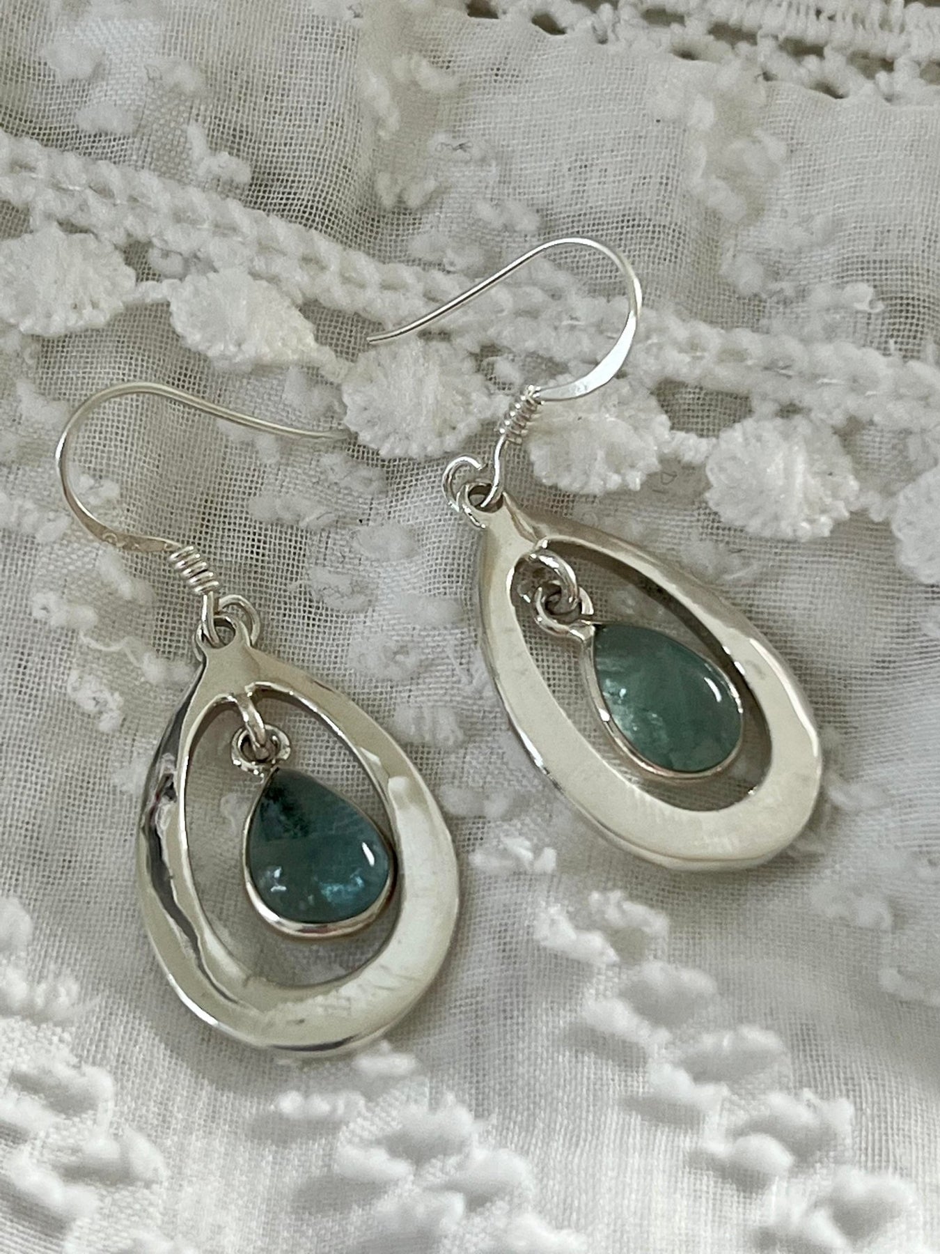 The combination of soft aqua tones of Blue Apatite with contrasting Sterling Silver is gently soothing yet stunning.