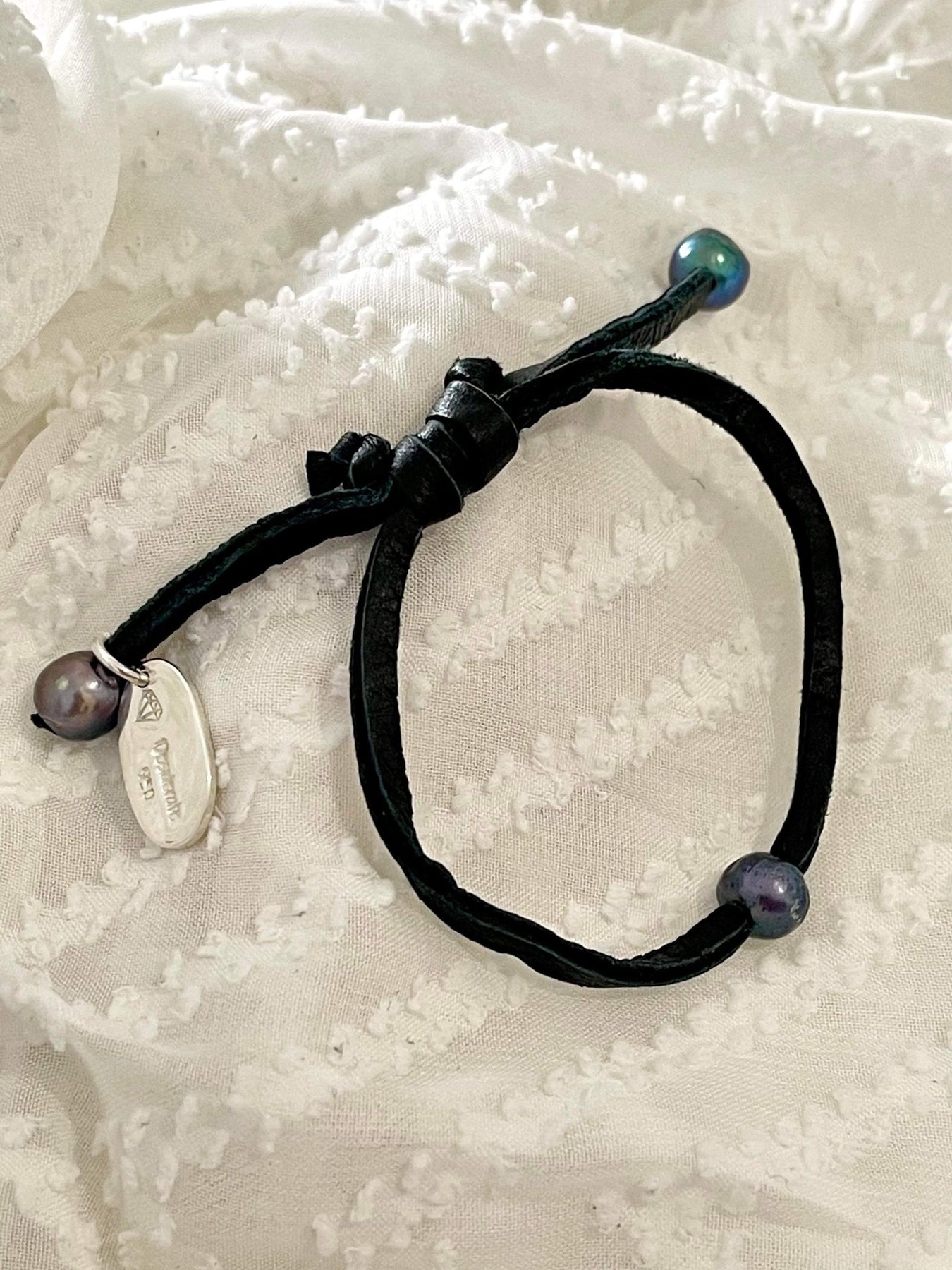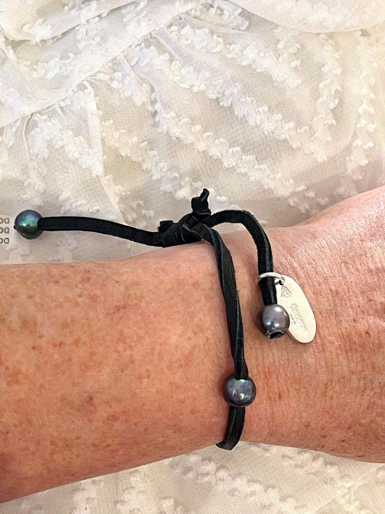 Giving off an edgy boho vibe your outfit will just love the added touch this leather pearl bracelet will give.