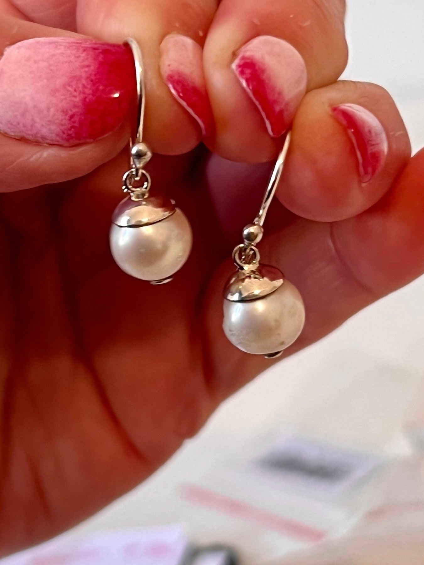 There's nothing as timeless as simple, stylish pearl drop earrings. Each pearl is finished with sterling silver fittings.