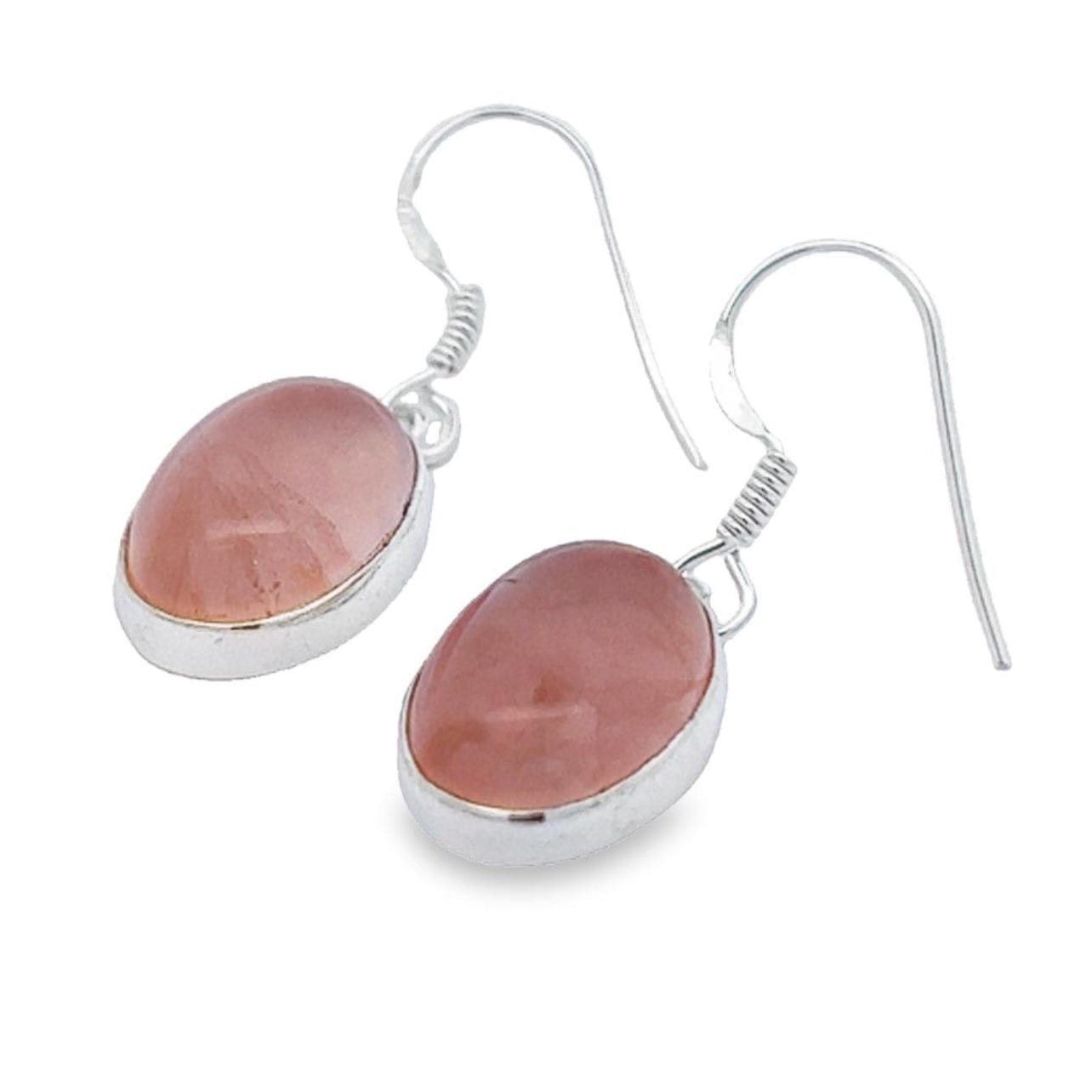 Pretty pale pink rose quartz cabochon earrings in sterling silver.