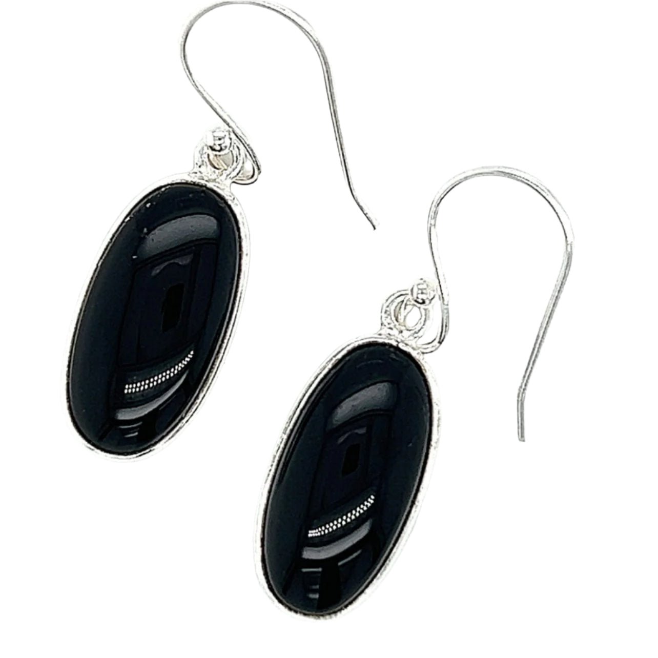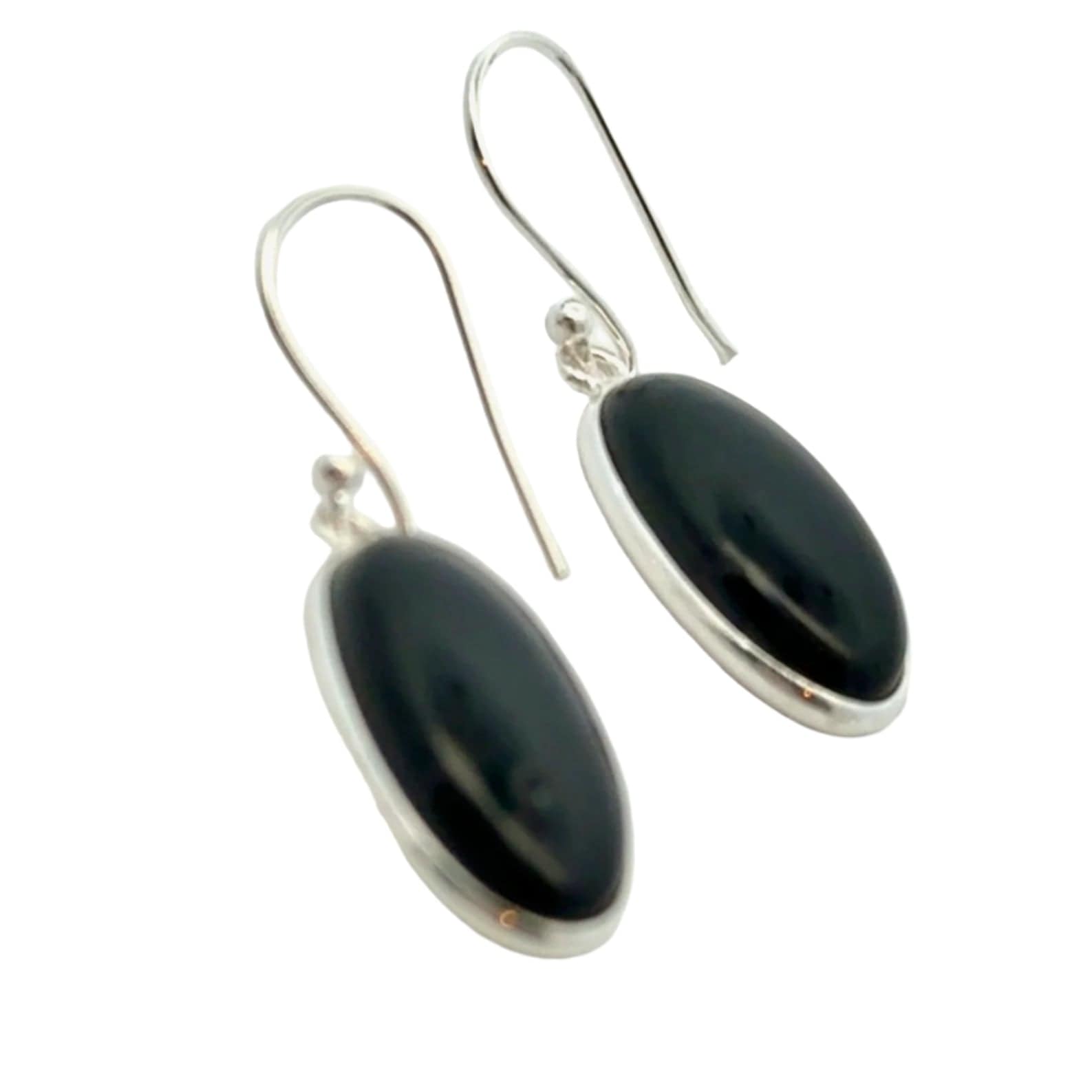 Crafted from smooth cabochon cut Black Onyx and set in sterling silver, they bring a sleek sophistication that works just as beautifully with a linen shirt as it does with an evening dress. Their dramatic drop length adds elegance without trying too hard, the kind of effortless style that turns heads without saying a word.