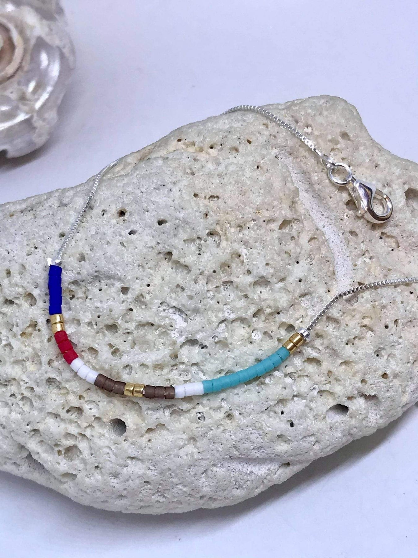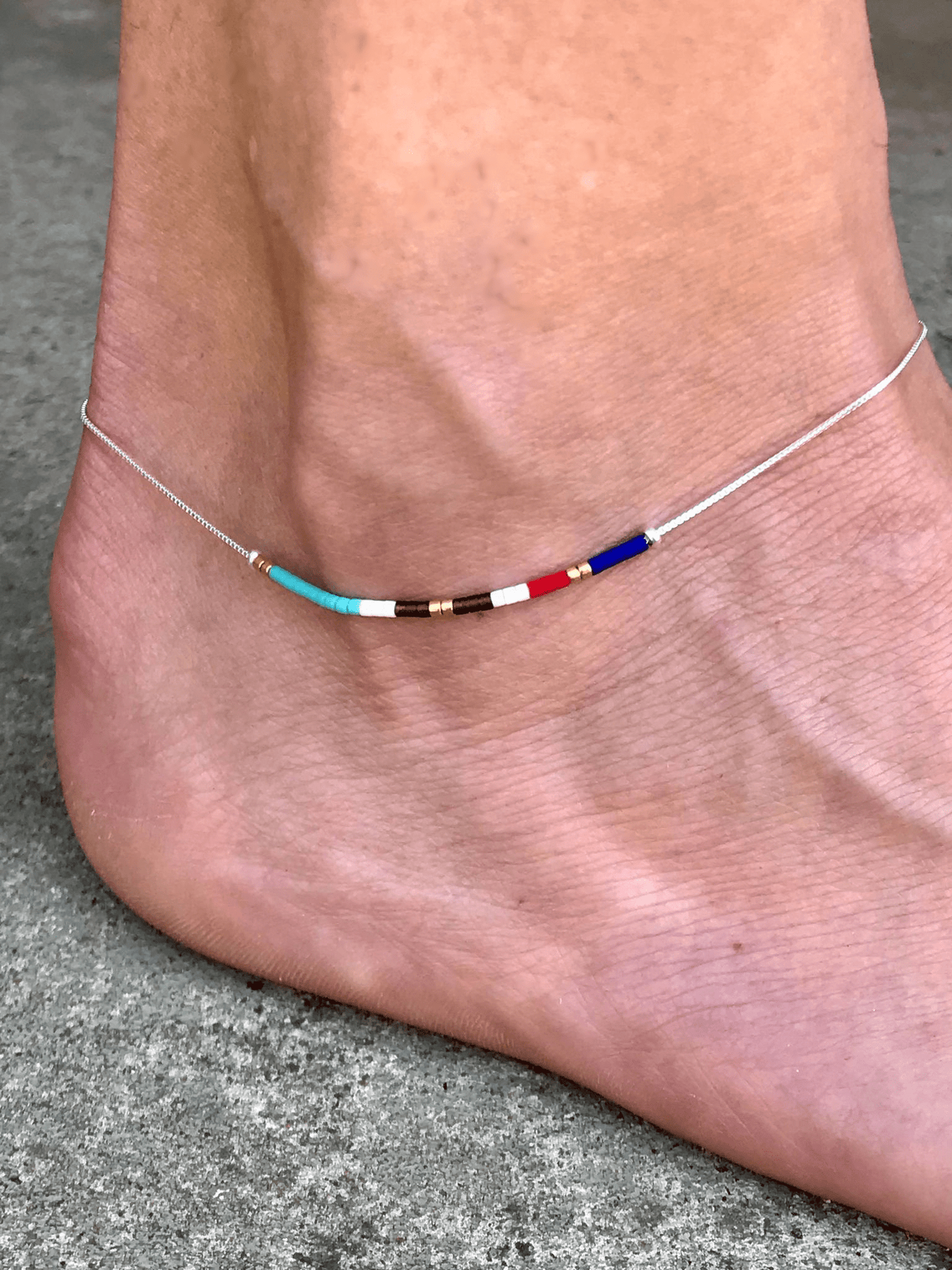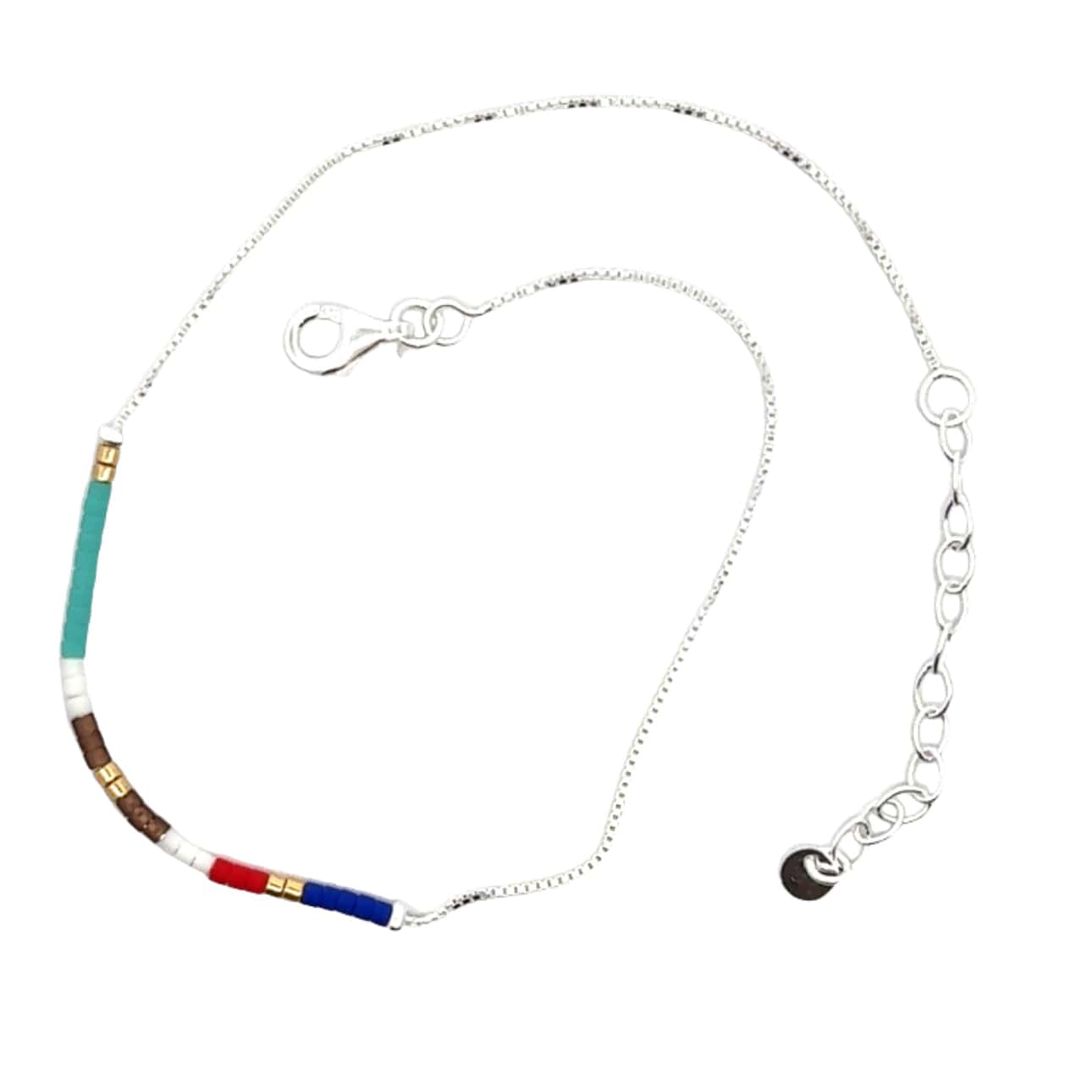 This versatile silver anklet adds a pop of colour to any occasion. Whether you're stepping out for a casual brunch with friends, enjoying a summer festival, or simply strolling through the city, the Rainbow Anklet complements your style with a touch of whimsy. Wear it solo for a subtle statement or stack it with your other favourites for a personalised look.