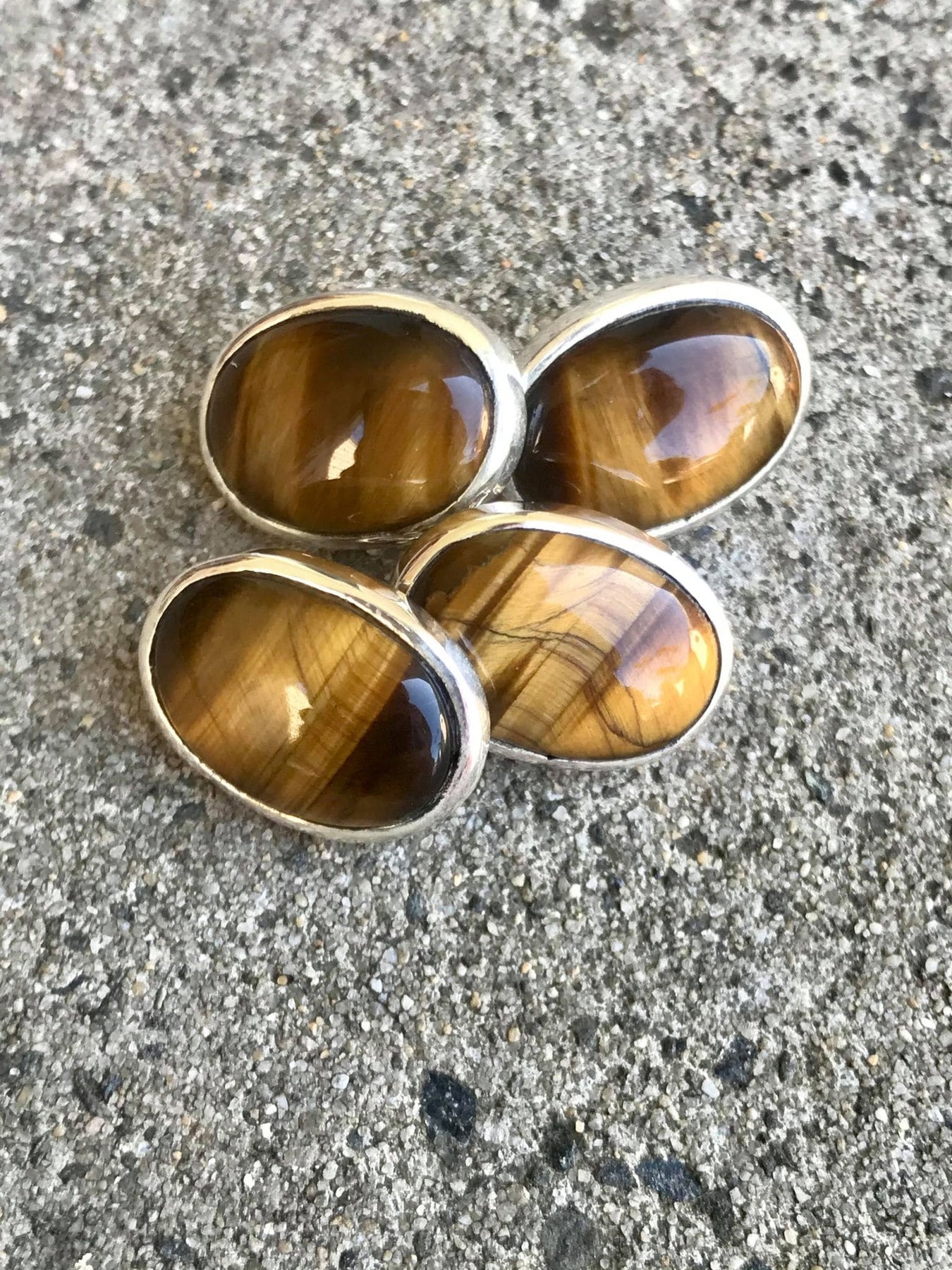 Make a statement with our Tiger's Eye cufflinks. The earthy tones of Tiger's Eye make them a versatile accessory, pairing well with all colors. These sterling silver cufflinks are handmade and set with Tiger's Eye cabochons, adding a touch of sophistication to any outfit.