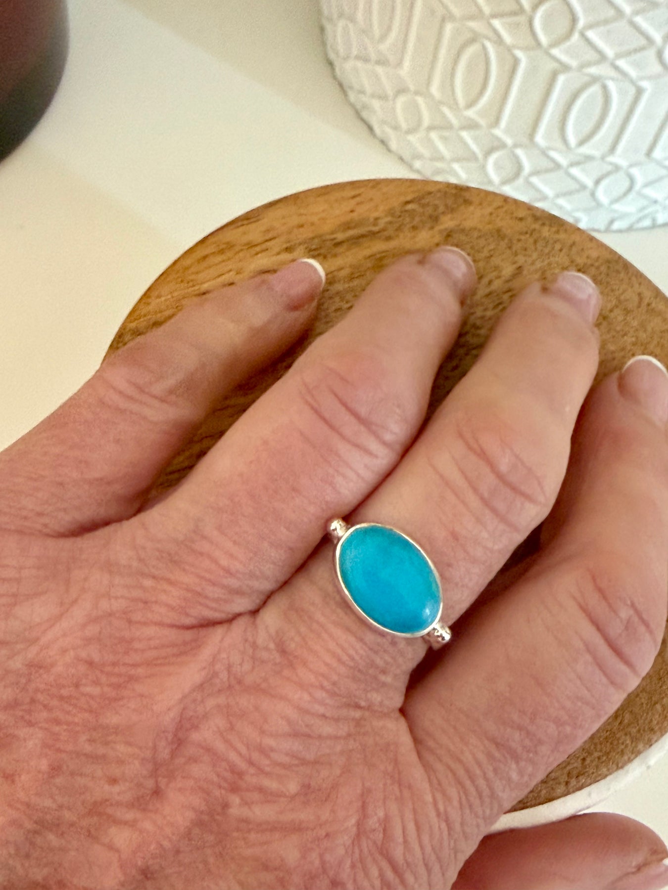 I love this happy bright ring, the turquoise is stunning. The service was fab and packaged beautifully.
